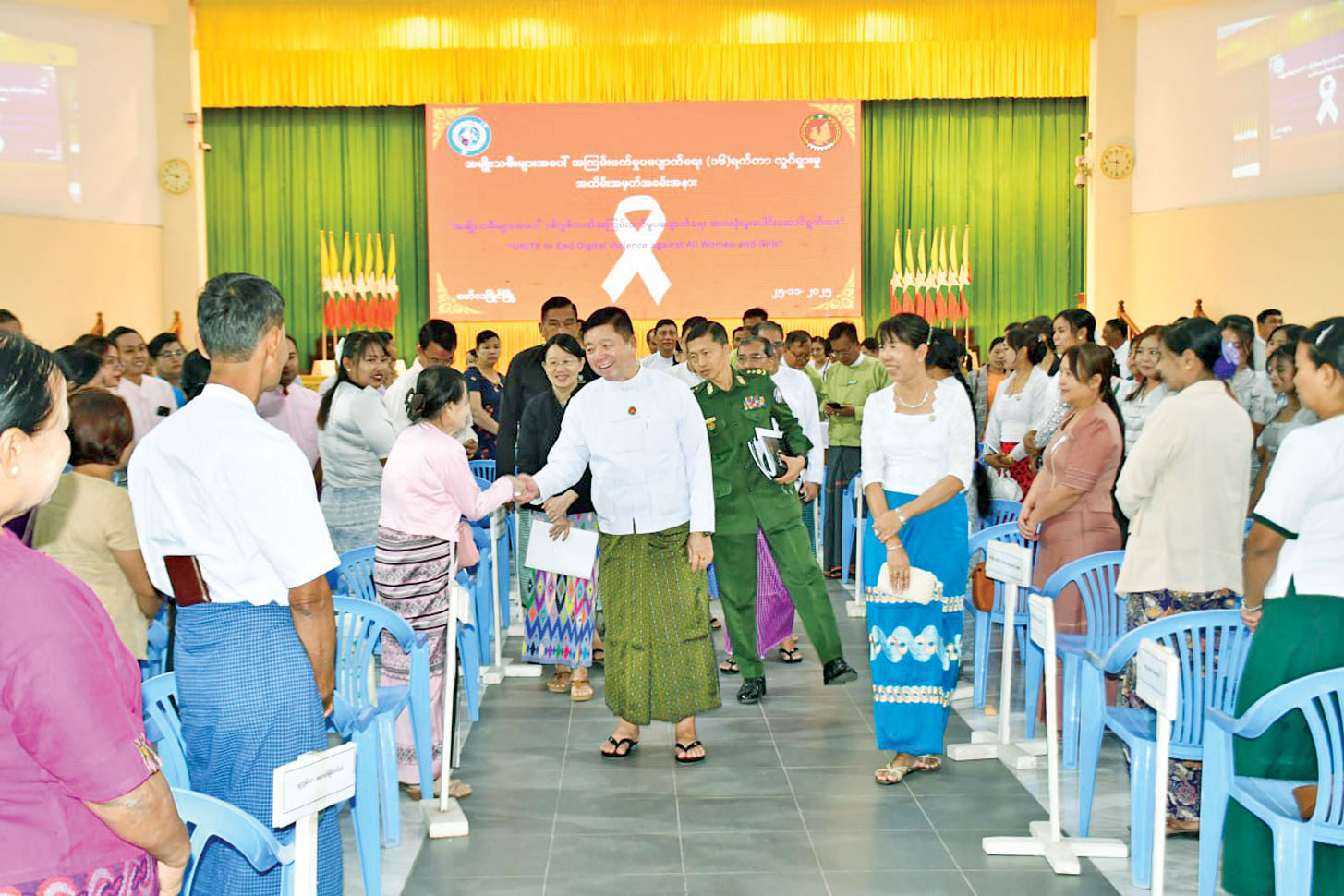 မွန်ပြည်နယ် ၂ဝ၂၅ ခုနှစ် “အမျိုးသမီးများအပေါ် အကြမ်းဖက်မှုပပျောက်ရေး (၁၆)ရက်တာ လှုပ်ရှားမှု” အထိမ်းအမှတ်အခမ်းအနားကို ယနေ့နံနက်ပိုင်းက မော်လမြိုင်မြို့ ပြည်နယ်ခန်းမ၌ ကျင်းပသည်။