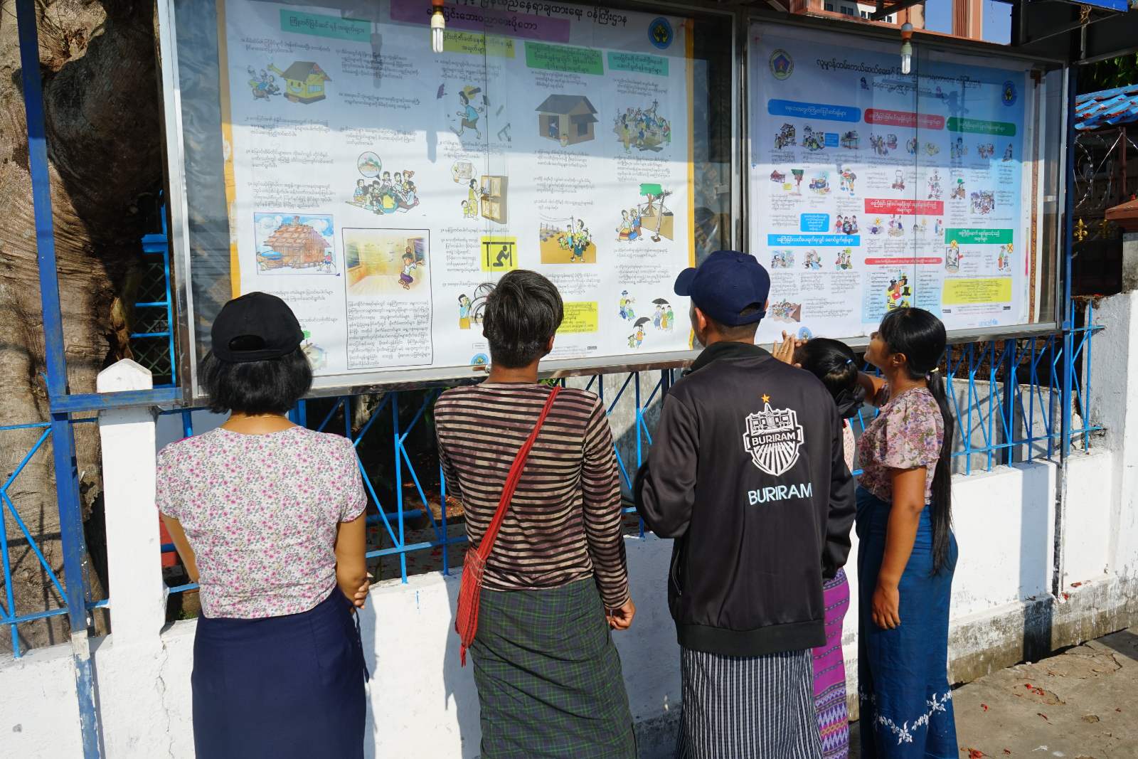 အဆိုပါ အသိပညာပေး မြေစိုက်ဆိုင်းဘုတ်တွင် မုန်တိုင်းအန္တရာယ့်အတွက် ကြိုတင်ပြင်ဆင်ရန် အချက် များ၊ မုန်တိုင်းကျရောက်ဆဲ၊ ကျရောက်ပြီးအချိန်များတွင် လုပ်ဆောင်ရမည့်အချက်များ၊ မုန်တိုင်း အန္တရာယ်အား ကြိုတင်သိရှိနိုင်ပြီး ပြင်ဆင်ဆောင်ရွက်နိုင်စေရန် ပြည်သူများအနေဖြင့် သဘောပေါက် လွယ်စေသည့် အရောင်ဖြင့် သတိပေးစနစ်များကို ပြသထားသဖြင့် ပြည်သူများမှ စိတ်ပါဝင်စားစွာ ကြည့်ရှုကြကြောင်း သိရသည်။