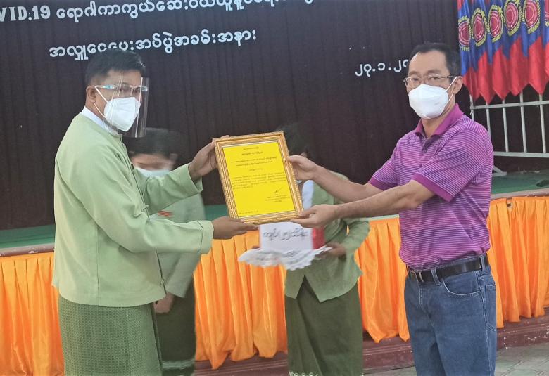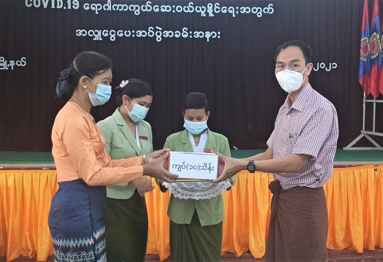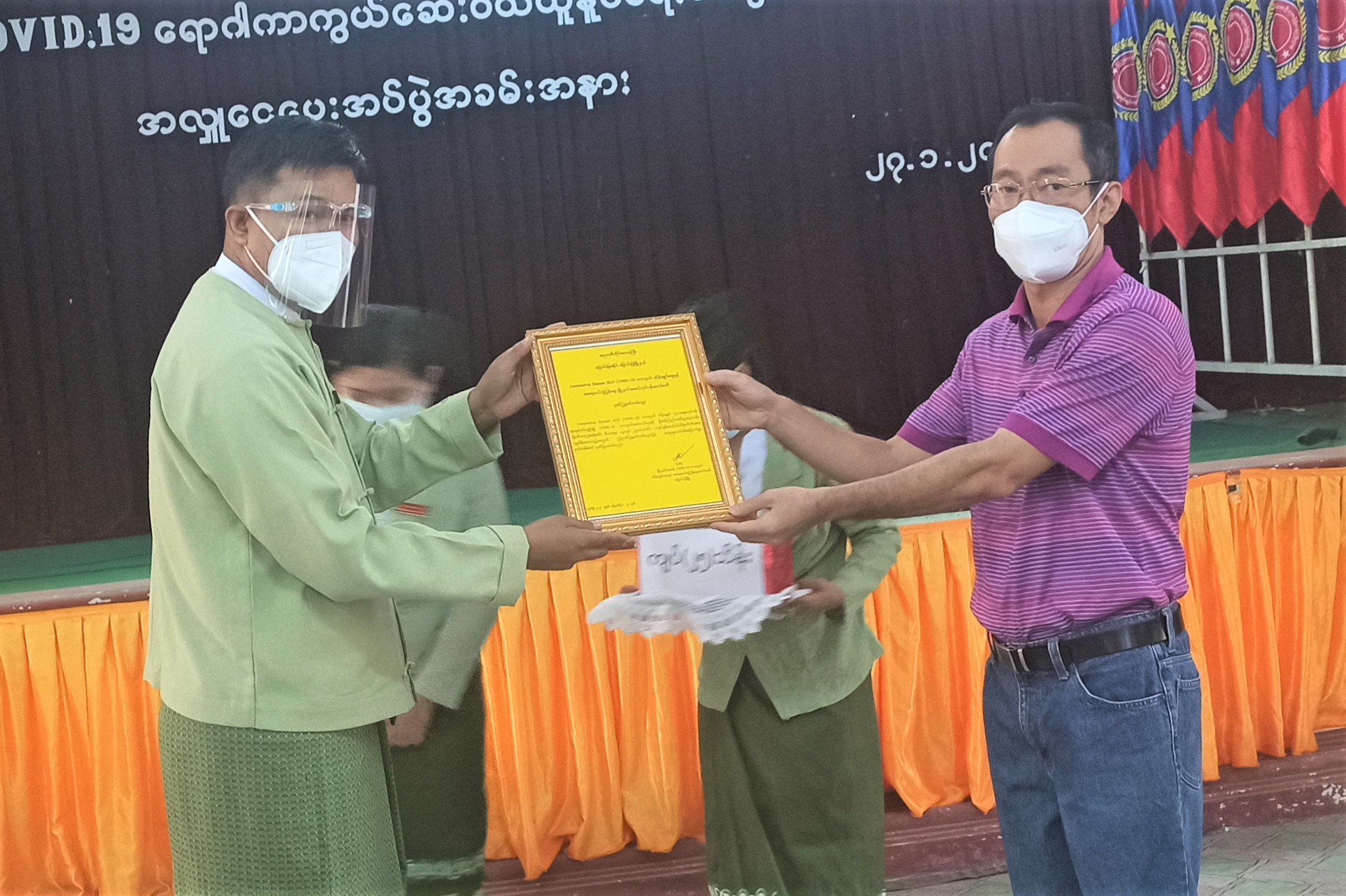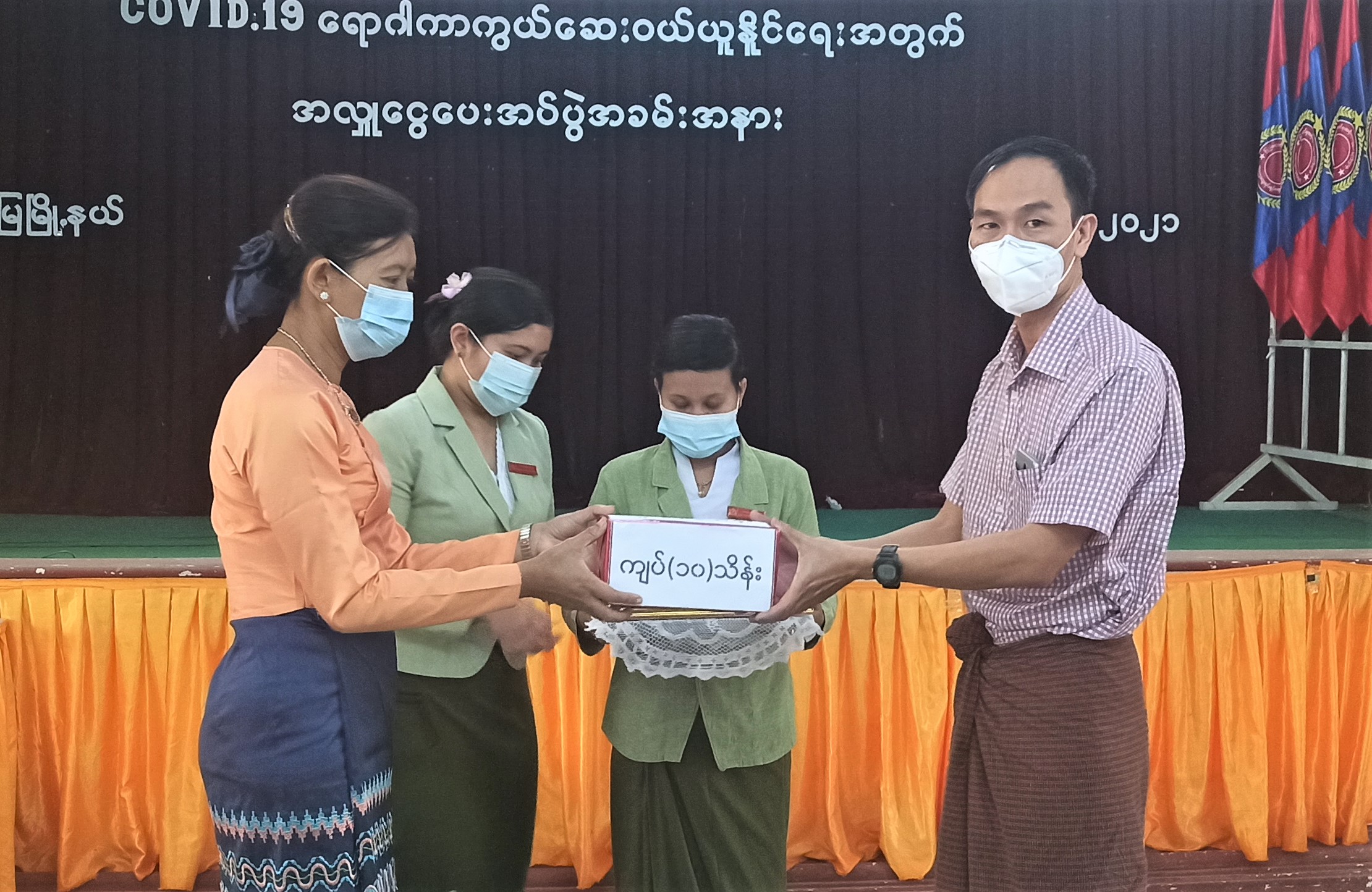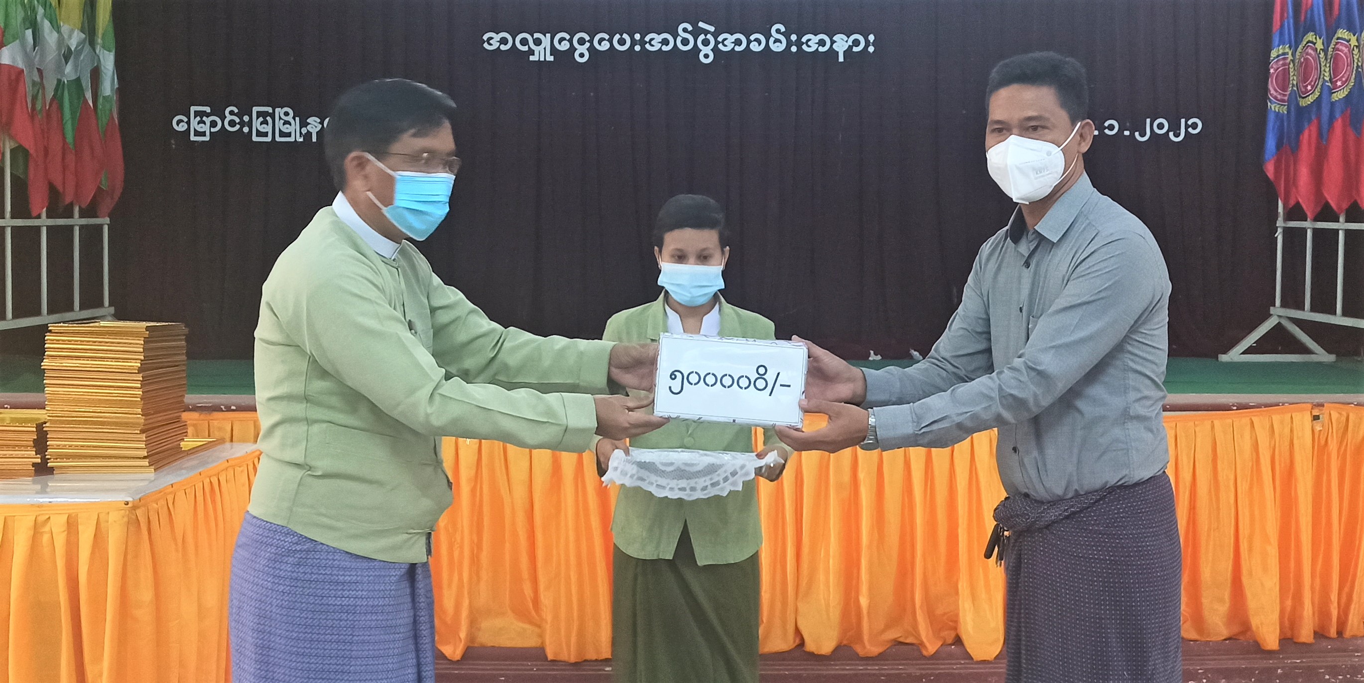 ဧရာ၀တီတိုင်းဒေသကြီး၊ မြောင်းမြခရိုင်၊ မြောင်းမြမြို့နယ်တွင် စေတနာရှင်ပြည်သူများ စုပေါင်း၍ ကိုဗစ်−၁၉ ကာကွယ်ဆေး ဝယ်ယူနိုင်ရန်အတွက် အလှူငွေ ပေးအပ်လှူဒါန်းပွဲ အခမ်းအနားကို ဇန်နဝါရီ ၂၇ ရက် နံနက် ၉ နာရီခွဲက မြောင်းမြမြို့ အထွေအထွေအုပ်ချုပ်ရေး ဦးစီးဌာနရုံး မြရွှေဝါ အစည်းအဝေးခန်းမ၌ ပြုလုပ်ရာ တိုင်းဒေသကြီး လွှတ်တော်ကိုယ်စားလှယ် ဒေါ်ခိုင်ဇင်ဦး (မြောင်းမြ မဲဆန္ဒနယ်−၁)က အမှာစကား ပြောကြာပြီး မြောင်းမြမြို့ရှိ စေတနာရှင် ပြည်သူများက ကိုဗစ်−၁၉ ကာကွယ်ဆေး ဝယ်ယူရန် အလှူငွေကျပ် ၆၅၃ သိန်း ပေးအပ် လှူဒါန်းကြသည်။