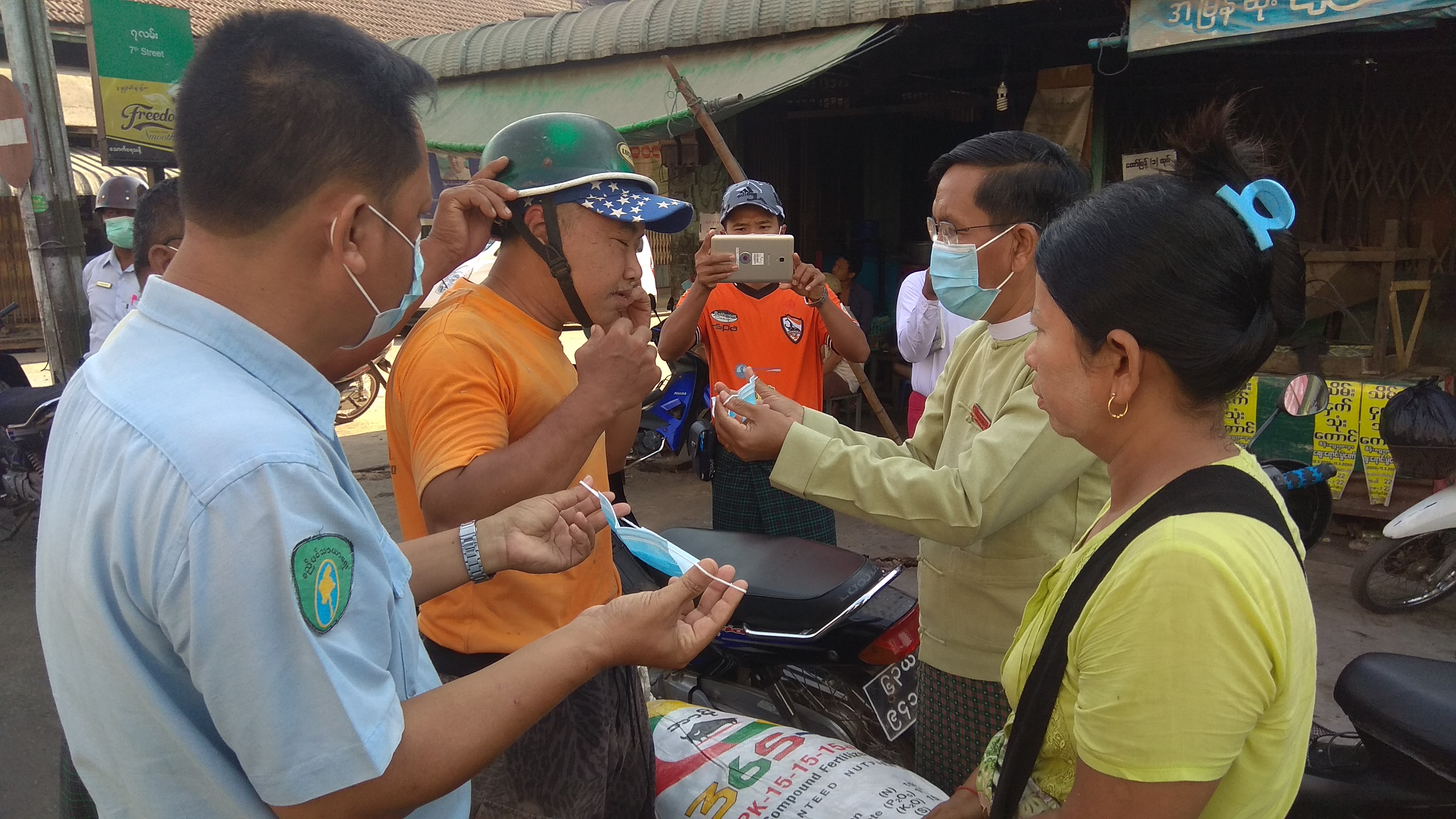 "မဖြစ်မနေအပြင်ထွက် သွားလာရတဲ့အခါ မိမိကိုယ်ကို ကာကွယ်တဲ့အနေနဲ့ နှာခေါင်းစည်း Mask တွေတပ်ဖို့၊ မပါတဲ့သူတွေကို နှာခေါင်းစည်း Mask တပ်ဆင်ပေးပြီး ဒါဏ်ငွေအဖြစ် ၅၀ဝ ကျပ်နဲ့ ရောင်းပေးတဲ့သဘောပါ၊ စီးပွားရေးမပါပါဘူး၊ ဒီလိုလုပ်တဲ့အတွက် အိမ်အပြင်ထွက်တိုင်း Mask တပ်ဖို့ သတိရနေမှာပါ" မြို့နယ် ကိုရိုနာဗိုင်းရပ် အရေးပေါ်တုန့်ပြန်ရေးကော်မတီ ဥက္ကဋ္ဌ၊ မြို့နယ်အုပ်ချုပ်ရေးမှူး ဦးကျော်ဆွေက ပြောကြားသည်။
