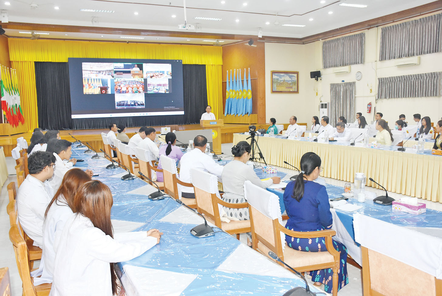 ဆေးတက္ကသိုလ်များ၏ အလုပ်သင်ဆရာဝန် လေ့ကျင့်သင်ကြားရေးဆေးရုံကြီးများတွင် အောက်တိုဘာ ၁ ရက်မှစတင်ပြီး အလုပ်သင်ဆရာဝန်များအဖြစ် တာဝန်ထမ်းဆောင်နေသူ မောင်မယ်သစ်လွင် အလုပ်သင်ဆရာဝန်များကို ကြိုဆိုပွဲအား ယနေ့နံနက်ပိုင်းက နေပြည်တော်ရှိ ကျန်းမာရေးဝန်ကြီးဌာန၌ Semi-virtual စနစ်ဖြင့် ကျင်းပသည်။