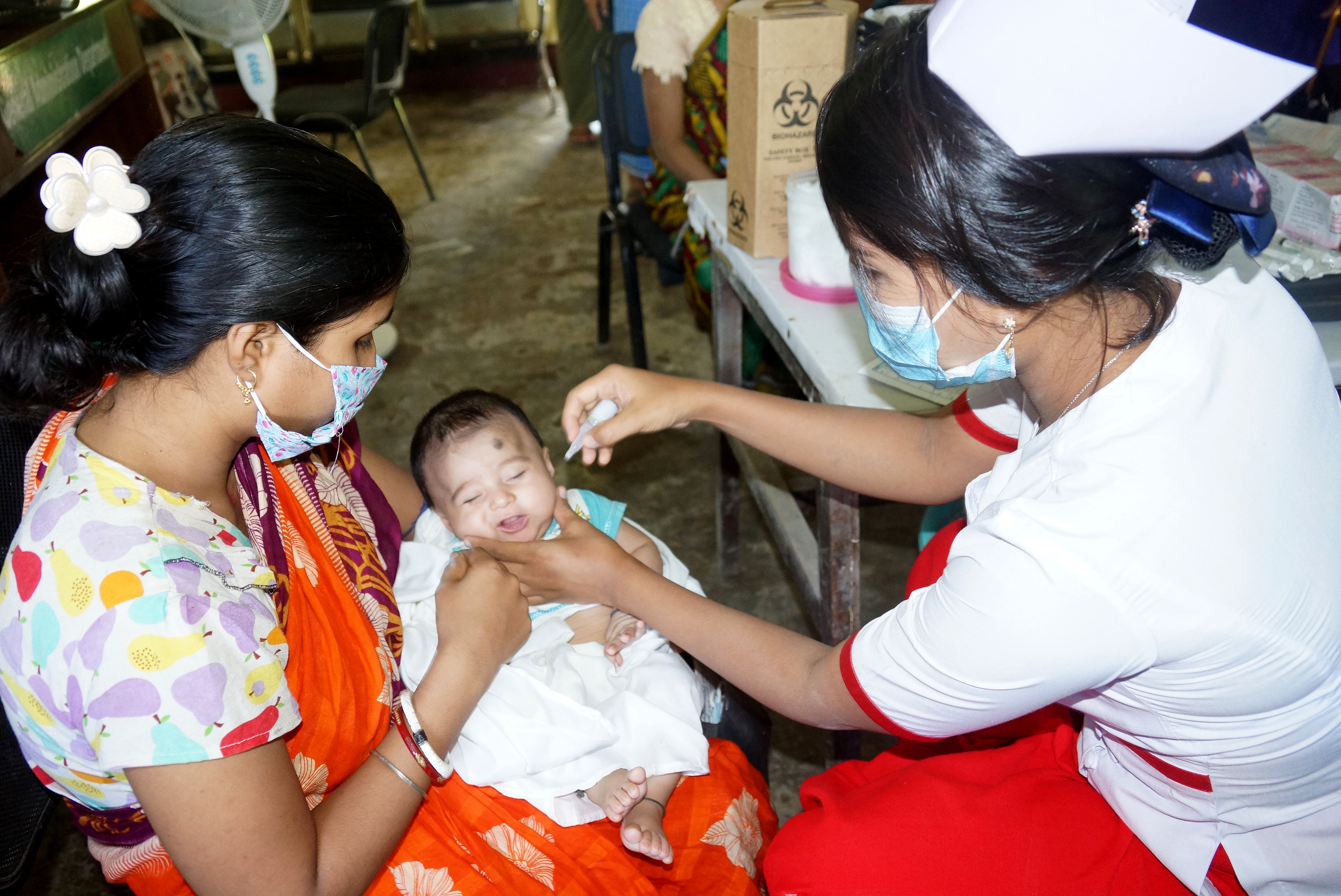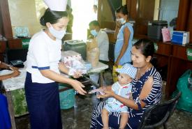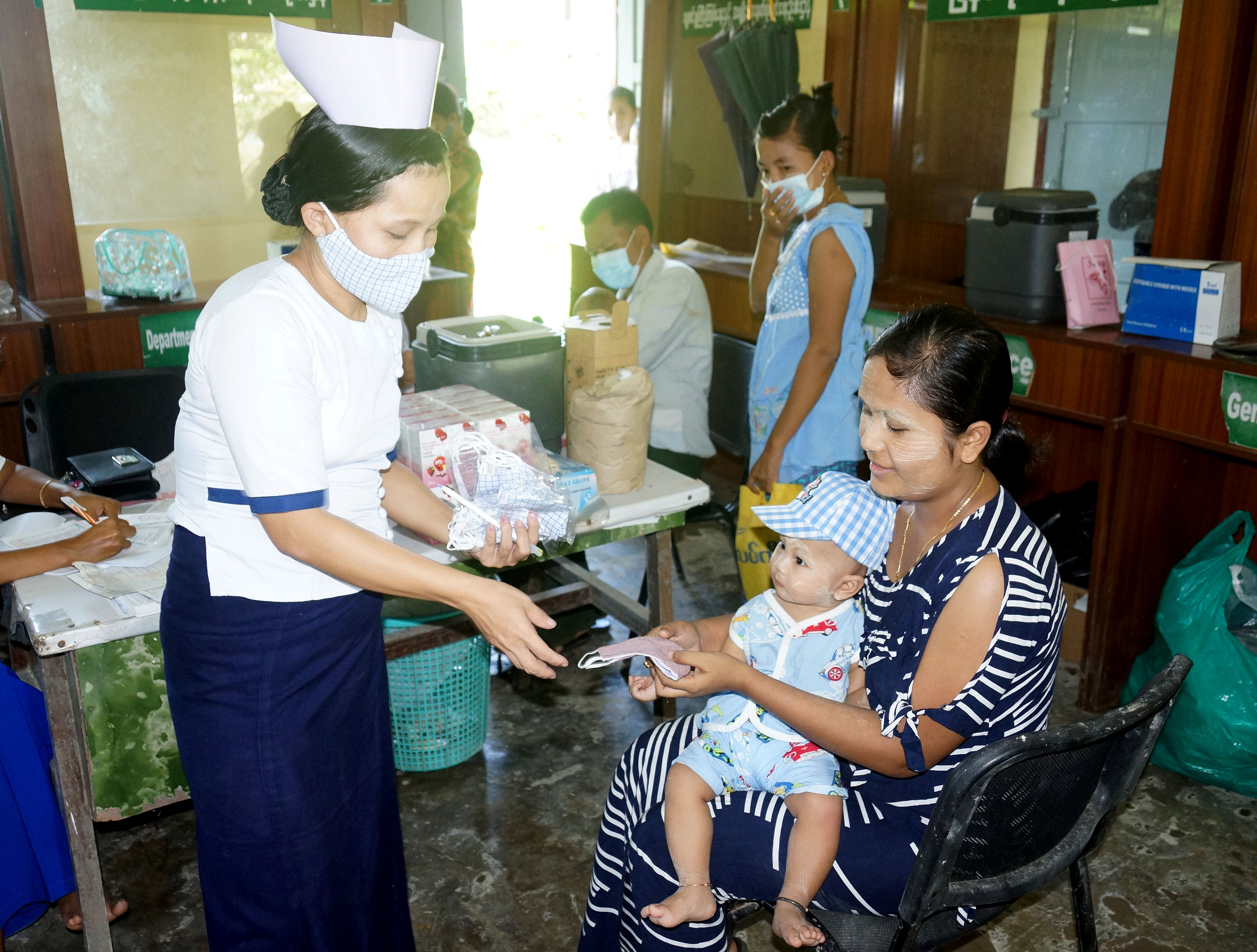 အဆိုပါ ပုံမှန်ကာကွယ်ဆေး ထိုးနှံတိုက်ကျွေးခြင်းလုင်ငန်းများ ဆောင်ရွက်ရာတွင် ကိုဗစ်-၁၉ ရောဂါ ကြိုတင်ကာ ကွယ်ရန်အတွက် လာရောက်ထိုးနှံသည့် မိခင်နှင့် အသက်(၂)နှစ်အောက် ကလေးများအား အဝင်ဝ၌ ကိုယ်အပူချိန် တိုင်းတာစစ်ဆေးခြင်းနှင့် နှာခေါင်းစည်း MASK များ အခမဲ့ဖြန့်ဝေပေးသည်။