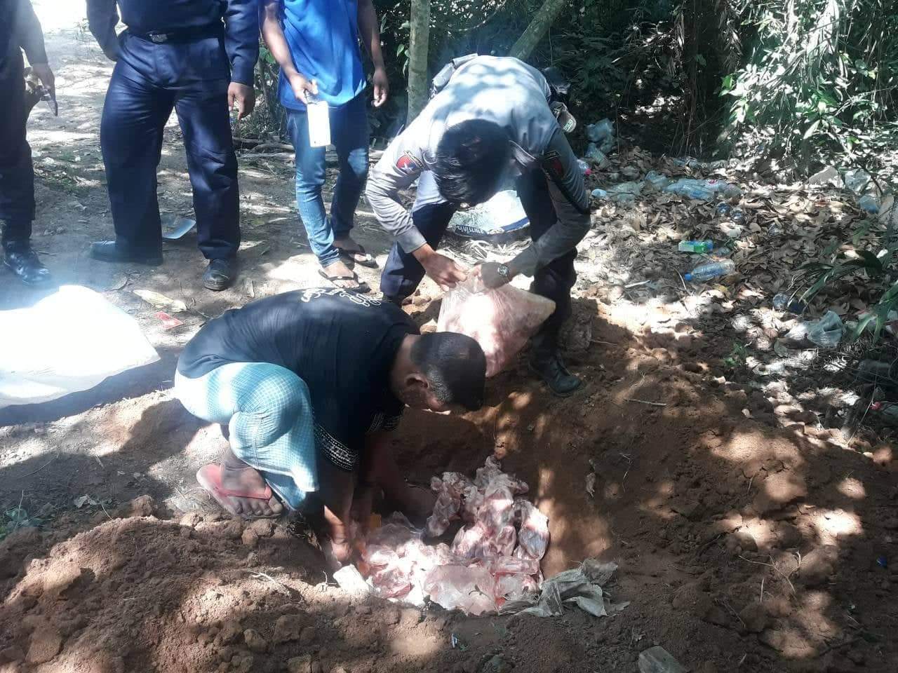 အဆိုပါသိမ်းဆည်းရမိခဲ့သော အေးခဲအသား (၅၇)ကီလိုခန့်အား မောတောင်မြို့ အုပ်ချုပ်ရေးမှူး ဦးသူရိန်မင်း ဦးစီးပူးပေါင်းအဖွဲ့မှ မောတောင်နယ်စပ်ဂိတ်အနီးတွင် ကျင်းတူး၍ မြေမြှုပ်ဖျက်ဆီးခဲ့ကြောင်း သိရသည်။