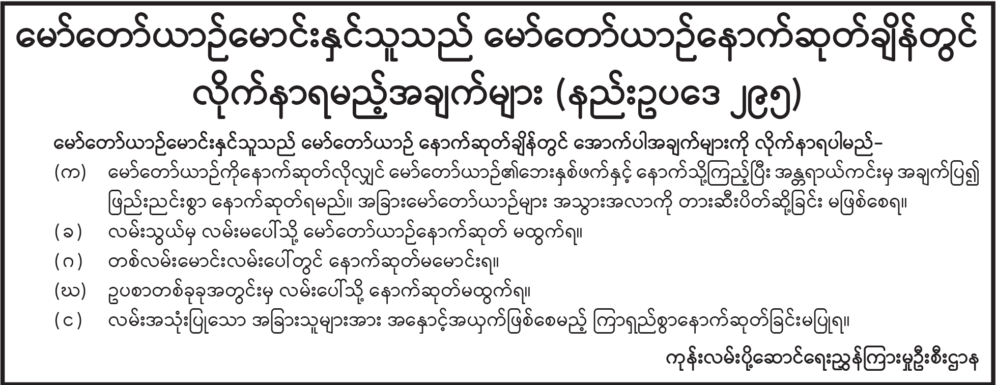 မော်တော်ယာဉ်မောင်းနှင်သူသည် မော်တော်ယာဉ်နောက်ဆုတ်ချိန်တွင် လိုက်နာရမည့်အချက်များ (နည်းဥပဒေ ၂၉၅)