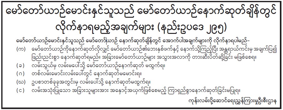 မော်တော်ယာဉ်မောင်းနှင်သူသည် မော်တော်ယာဉ်နောက်ဆုတ်ချိန်တွင် လိုက်နာရမည့်အချက်များ (နည်းဥပဒေ ၂၉၅)