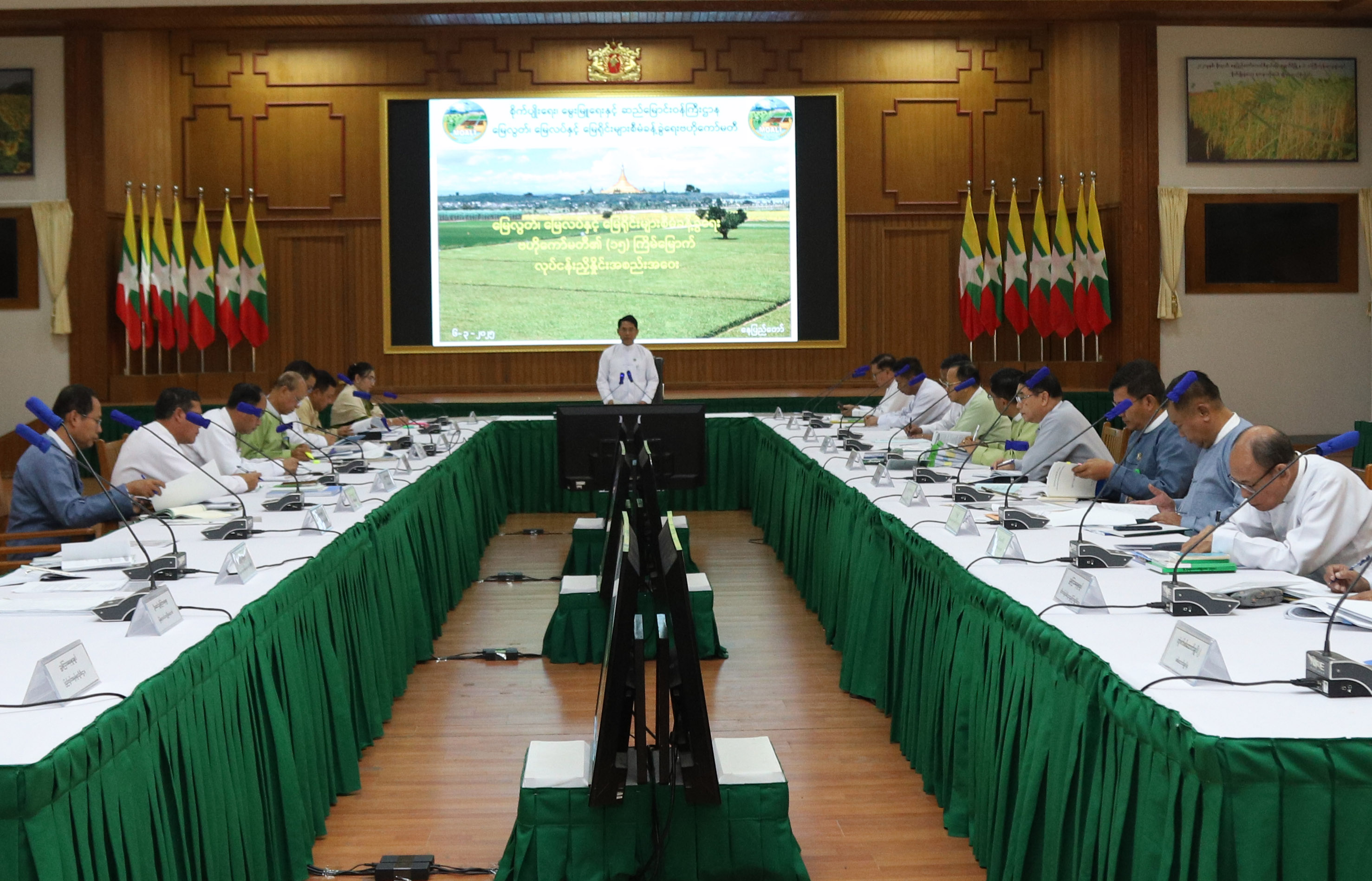 မြေလွတ်၊ မြေလပ်နှင့် မြေရိုင်းများ စီမံခန့်ခွဲရေးဗဟိုကော်မတီ၏ (၁၅)ကြိမ် မြောက်လုပ်ငန်းညှိနှိုင်းအစည်းအဝေးကို ယနေ့နံနက်ပိုင်းက နေပြည်တော်ရှိ စိုက်ပျိုးရေး၊ မွေးမြူရေးနှင့်ဆည်မြောင်းဝန်ကြီးဌာန ပြည်ထောင်စုဝန်ကြီးရုံး အစည်းအဝေးခန်းမ၌ ကျင်းပသည်။