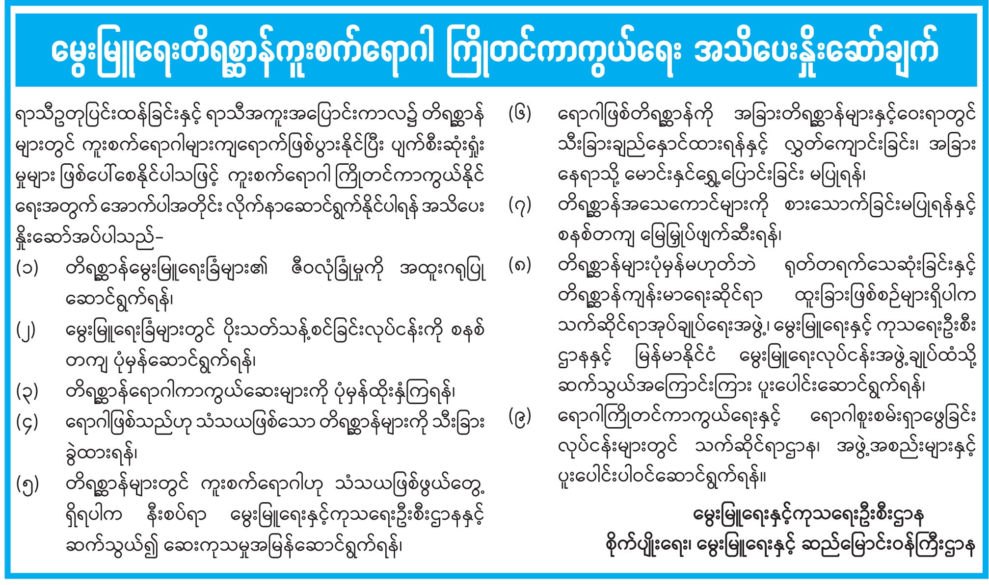 မွေးမြူရေးတိရစ္ဆာန်ကူးစက်ရောဂါ ကြိုတင်ကာကွယ်ရေး အသိပေးနှိုးဆော်ချက်