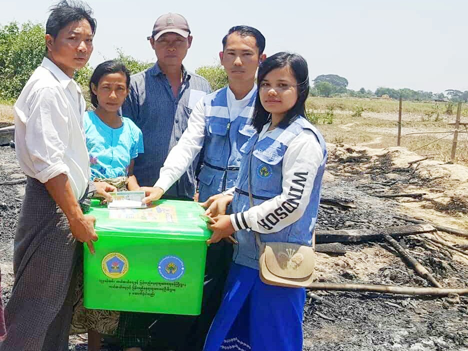 အဆိုပါကျေးရွာမှ မီးဘေးသင့်ခဲ့သော အိမ်ထောင်စု တစ်စု လူဦးရေ ၇ ဦးအတွက် ဆန်ရိက္ခာ ခုနှစ်ရက်စာ ငွေကျပ် ၁၄၇၀ဝ၊ အိမ်ဆောက်ပစ္စည်းဖိုး ငွေကျပ် တစ်သိန်း စုစုပေါင်းရန်ပုံငွေ ကျပ် ၁၁၄၇၀ဝ နှင့် Family Kit ၁ ပုံးတို့ကို ဘေးအန္တရာယ်ဆိုင်ရာစီမံခန့်ခွဲမှုဦးစီးဌာနမှ တာဝန်ရှိသူများနှင့် ကျေးရွာအုပ်ချုပ်ရေးမှူးတို့က မီးဘေးသင့် အိမ်ထောင်စု၏ လက်ဝယ်အရောက် ထောက်ပံ့ပေးအပ်ခဲ့သည်။
