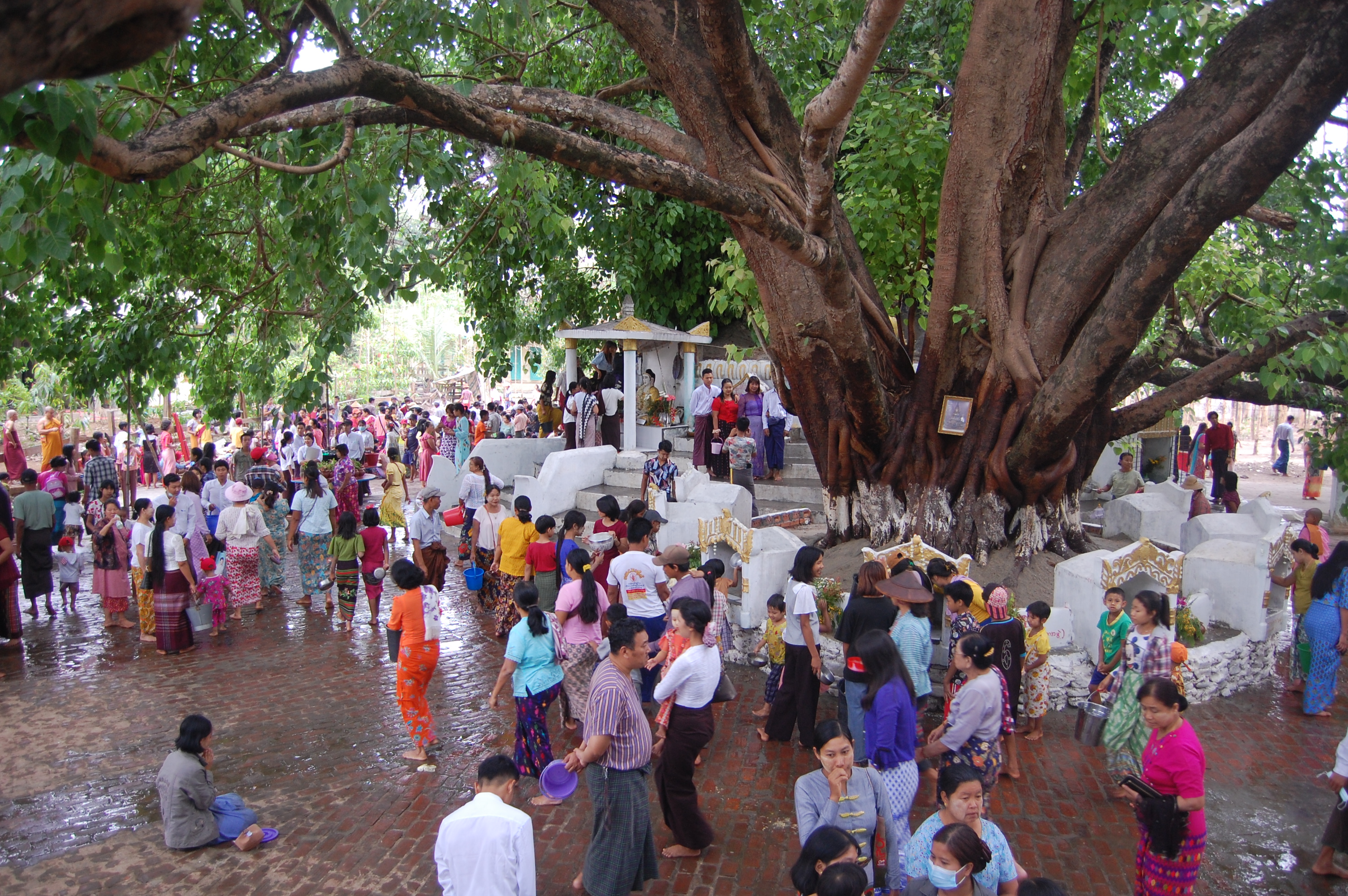ရှေးယခင် ဘိုးဘွားများက ထေရဝါဒ ဗုဒ္ဓသာသနာ ထွန်းကားရေးအထိမ်းအမှတ်အဖြစ် ခြောက်သွေ့ခြင်း ရှိသောလကို စိမ်းလမ်းစိုပြေစေရန် စိုက်ပျိုးခဲ့ကြသော မြန်မာ့တို့၏ မဟာဗောဓိညောင်ပင်ကို ပရိဘောဂစေတီအဖြစ် သတ်မှတ်ကာ ညောင်ရေသွန်းခြင်း စည်းကာသိုက်မြိုက်စွာ စုပေါင်းရေလောင်းခြင်း ဓလေ့ထုံးတမ်းကို ပြုလုပ်ကြလျက်ရှိသည်။