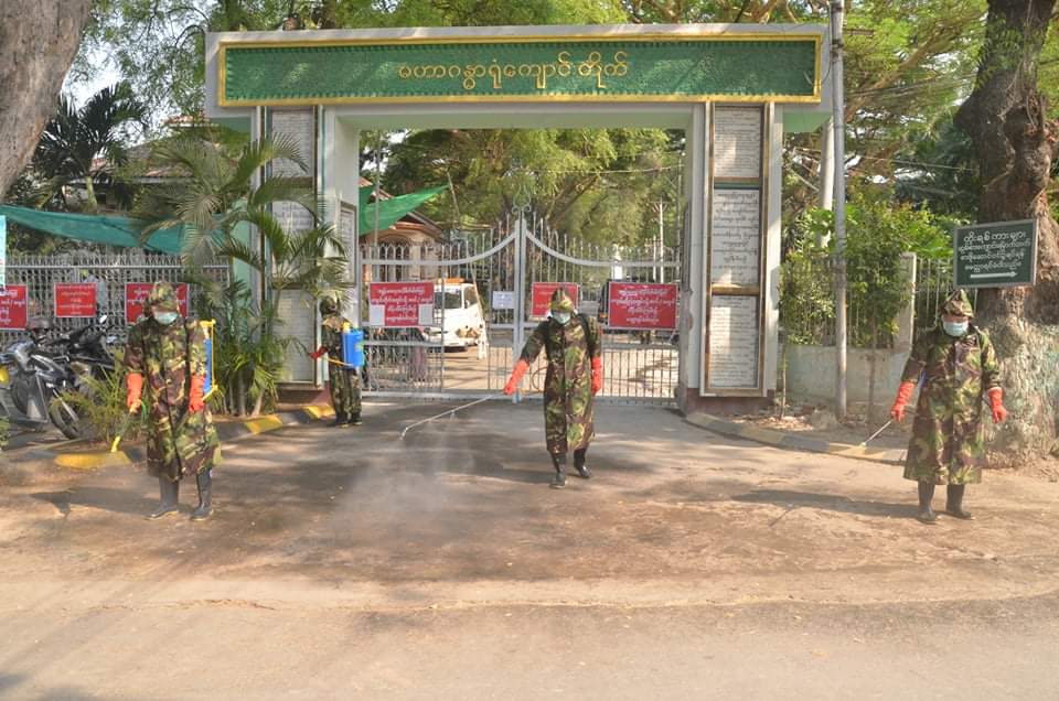 အလားတူ မန္တလေးမြို့၊ ဗန်းမော်ကျောင်းတိုက်ရှိ အေးကမ္ဘာသာသနာ့ဗိမာန်တော်ကြီး၊ မန္တလေး ဗုဒ္ဓတက္ကသိုလ်၊ သံဃာတော်များသီတင်းသုံးနေထိုင်ရာ ကျောင်းဆောင်များအား COVID-19 ကူးစက်ရောဂါကာကွယ်ရေး ပိုးသတ်ဆေးဖြန်းခြင်းနှင့် နယ်မြေခံတပ်ရင်းမှ ဆေးကုသရေးအဖွဲ့က လိုအပ်သော ကျန်းမာရေးစစ်ဆေးကုသမှုများ ဆောင်ရွက်ခဲ့ကြောင်း သိရသည်။