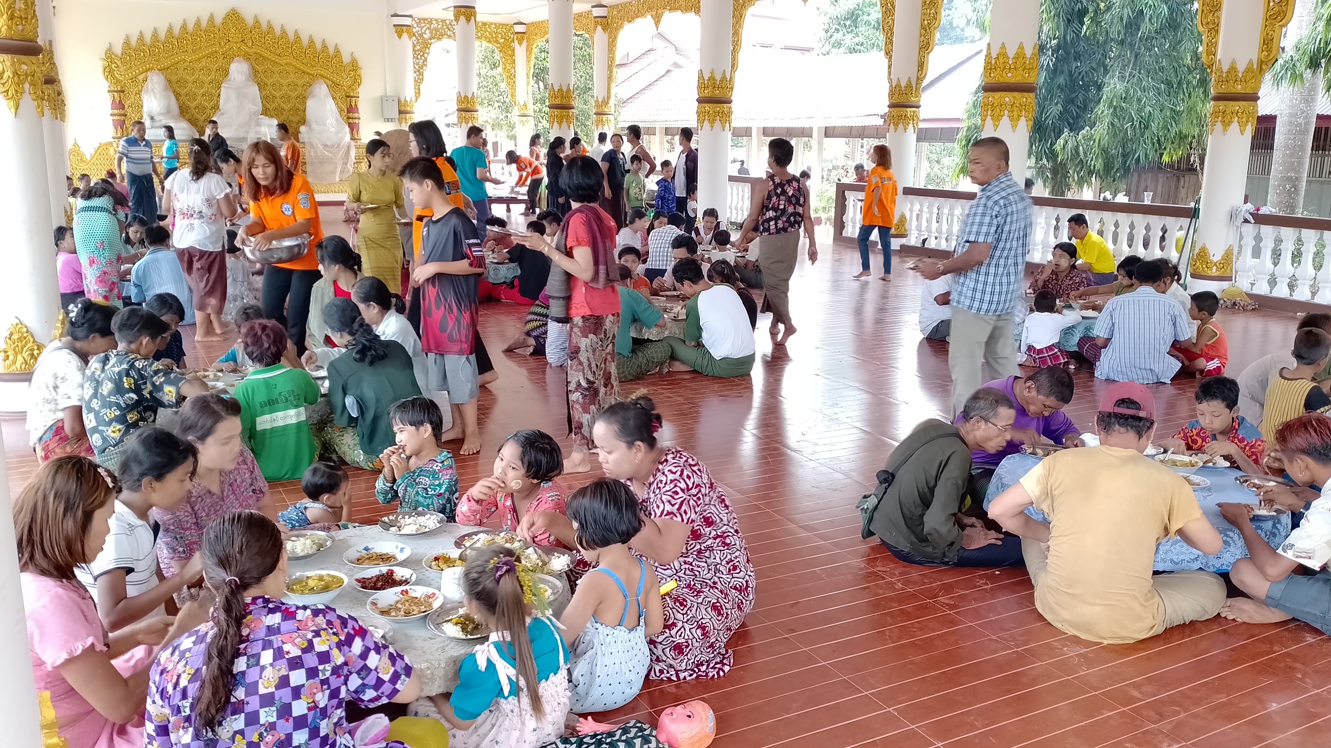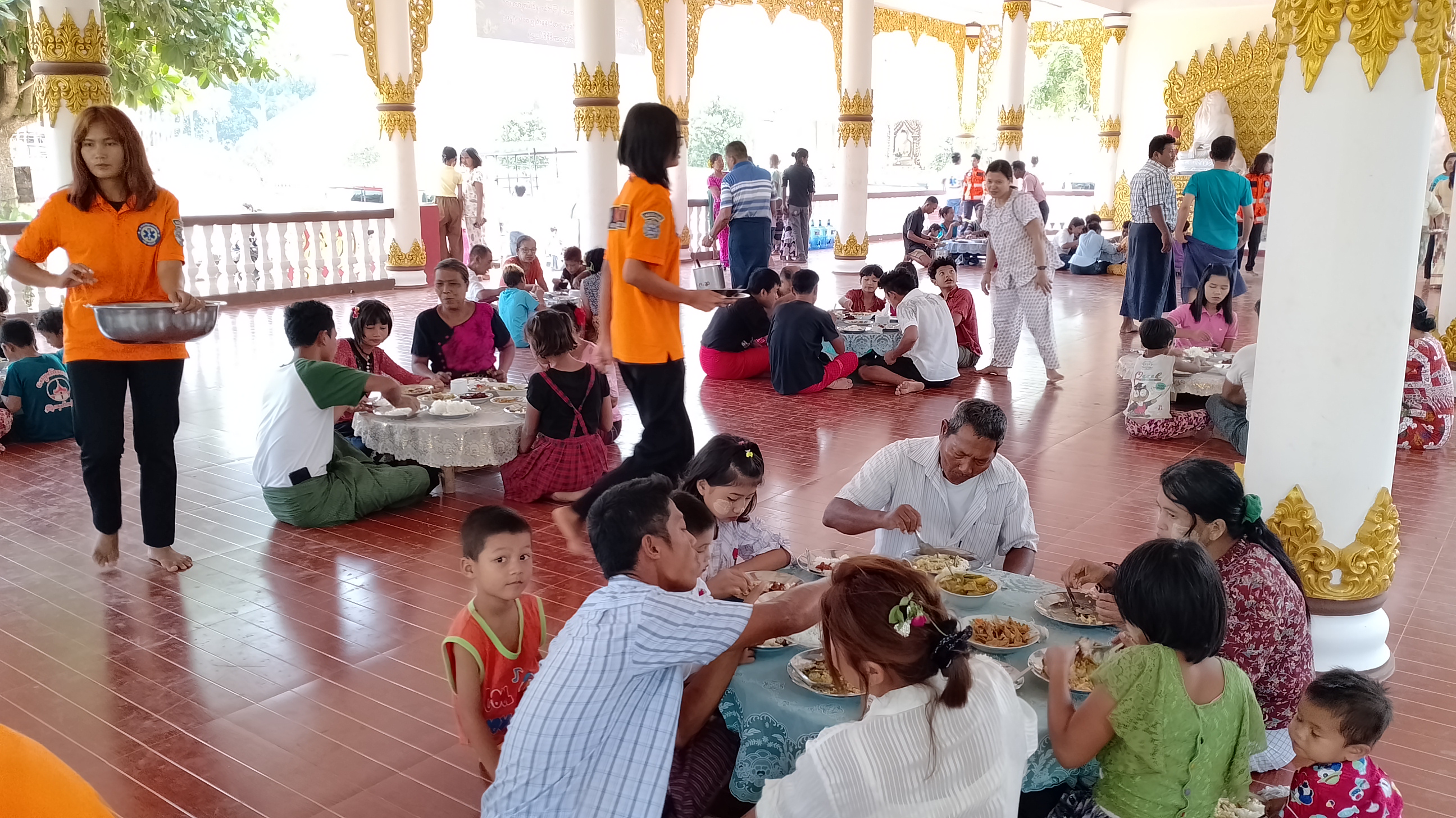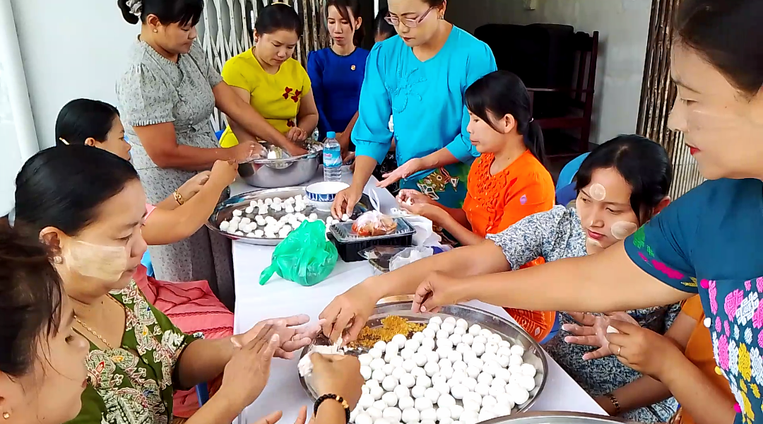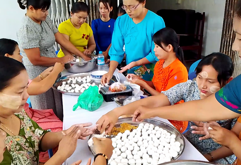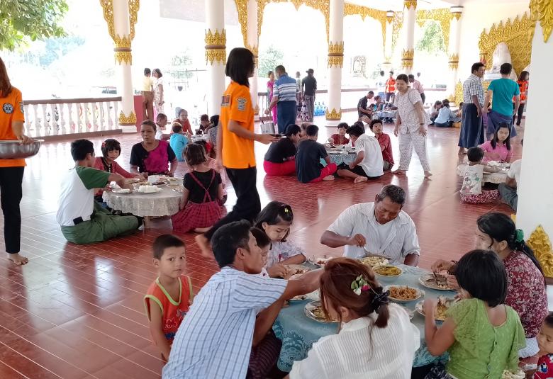သမိုင်းဝင်ဆံတော်ရှင် ကန်ကြီးစေတီတော်မြတ်ကြီးတွင် အလှူရှင်များစုပေါင်း၍ ကြက်သားပဲဟင်း၊ သင်္ကြန်ထမင်း၊ မြို့နယ်အထွေထွေအုပ်ချုပ်ရေးဦးစီးဌာနမှ မုန့်လုံးရေပေါ်၊ ခေါက်ဆွဲကြော်၊ မြို့နယ်ရဲတပ်ဖွဲ့မှ မုန့်လက်ဆောင်းဖြင့် စတုဒိသာ ကျွေးမွေးလှူဒါန်းကြသည်။ မြို့နယ်အတွင်းရှိ ရပ်ကွက်/ကျေးရွာများတွင်လည်း မဟာသင်္ကြန်ကာလအတွင်း မဏ္ဍပ်ငယ်များ၌ ရိုးရာအစားအစာ များကို ကျွေးမွေးလှူဒါန်းခြင်းဖြင့် ကုသိုလ်ယူကြကာ ဒေသခံပြည်သူများနှင့် ရေလောင်း ရေပက်ခံ သူများက မြန်မာရိုးရာယဉ်ကျေးမှု အတာသင်္ကြန်ရေသဘင်ပွဲတော်ကို အေးချမ်းပျော်ရွှင်စွာ ပါဝင်ဆင်နွှဲကြကြောင်း သိရသည်။