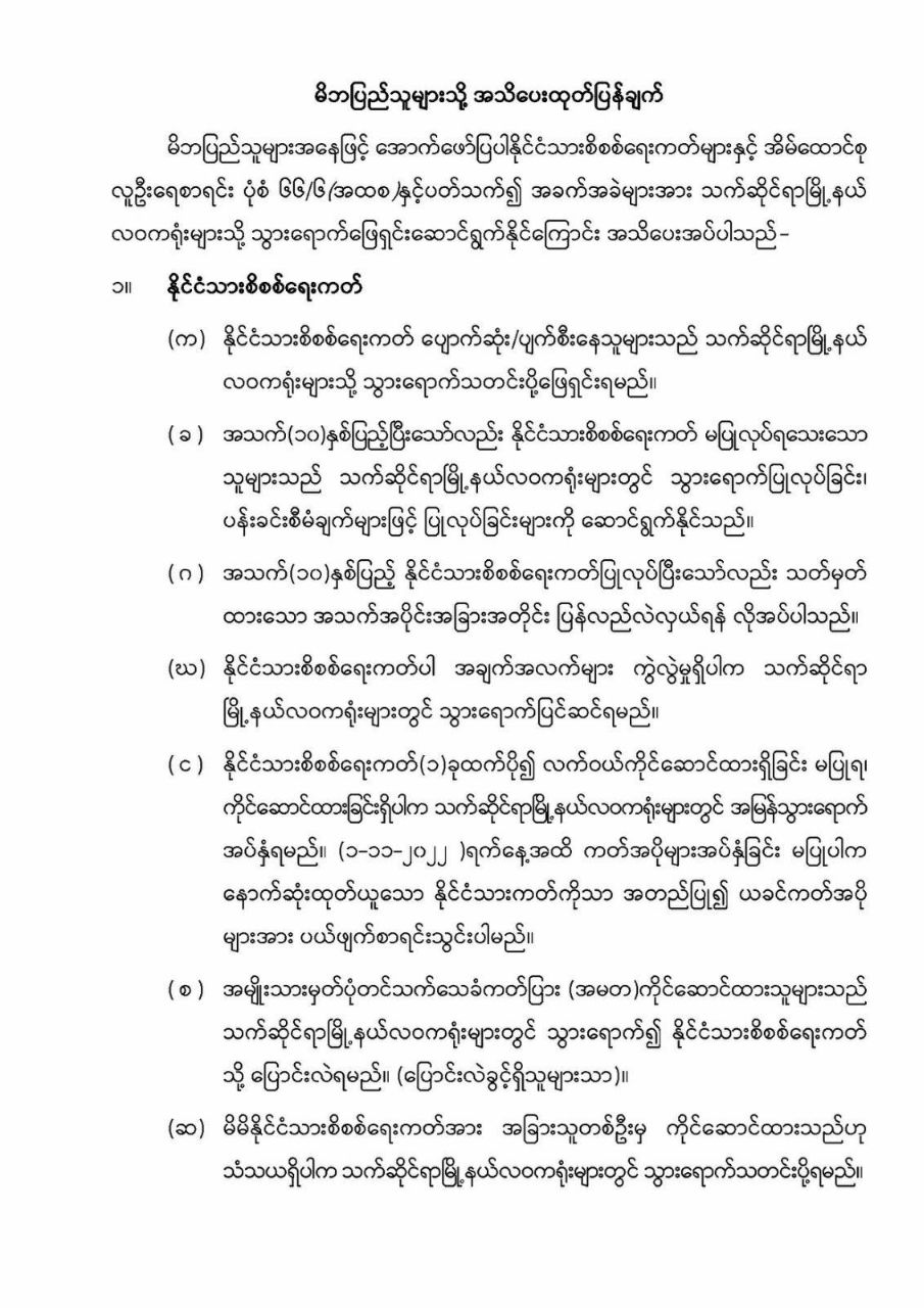 မိဘပြည်သူများသို အသိပေးထုတ်ပြန်ချက်