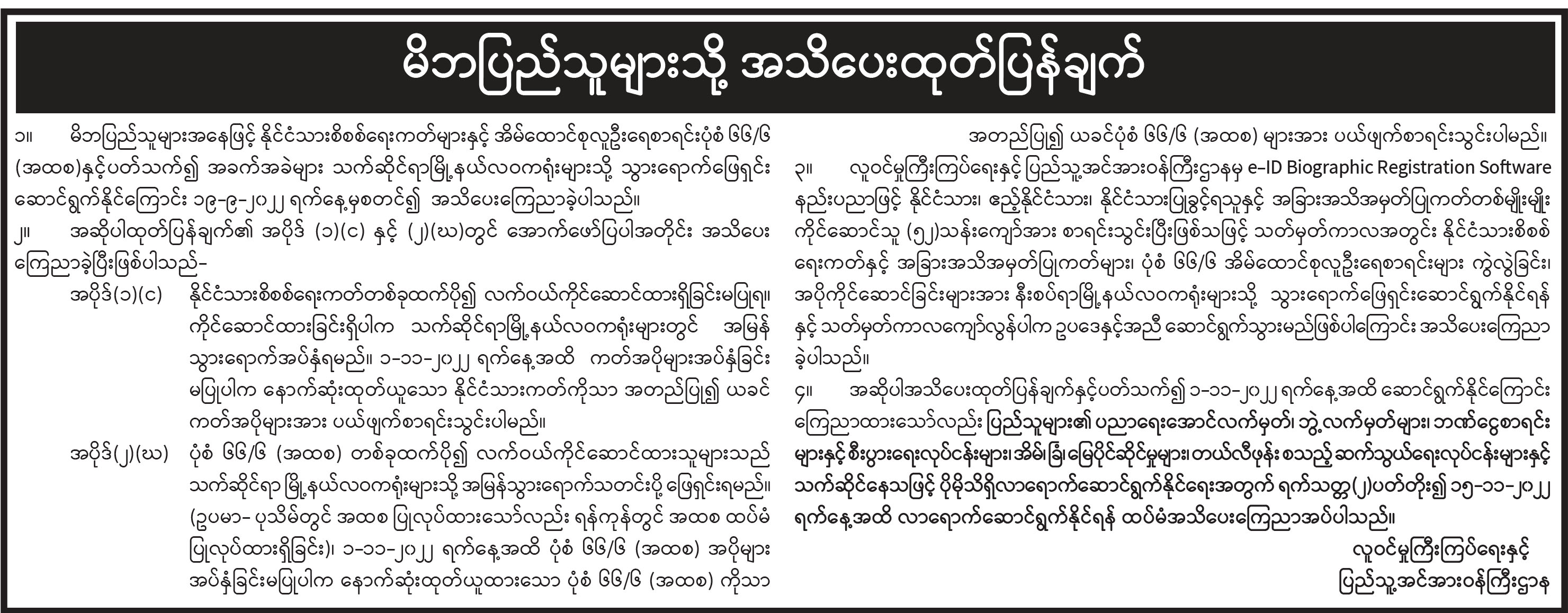 မိဘပြည်သူများသို့ အသိပေးထုတ်ပြန်ချက်