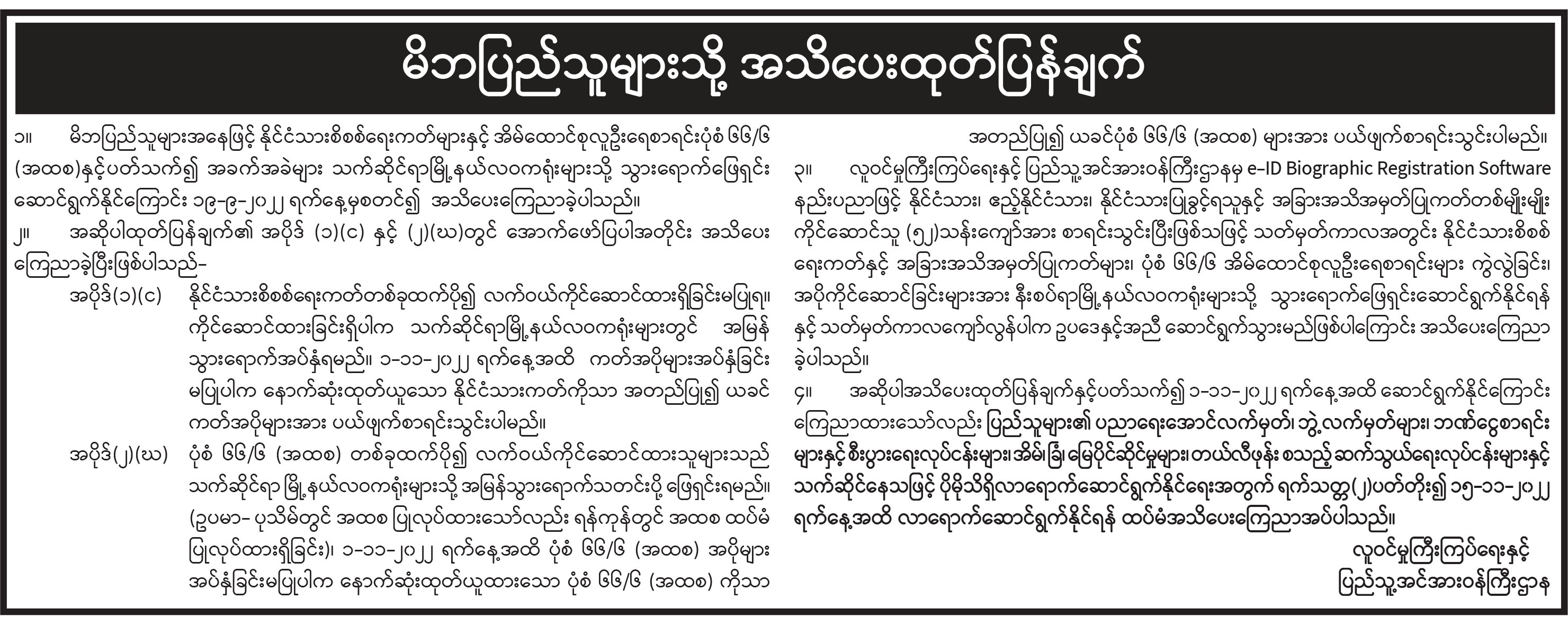 မိဘပြည်သူများသို့ အသိပေးထုတ်ပြန်ချက်