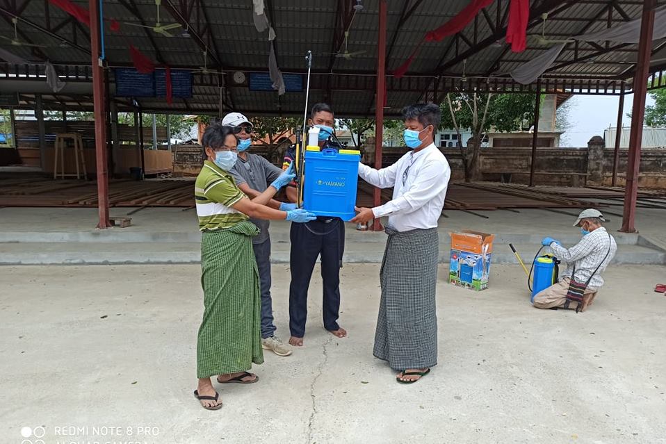 အဆိုပါ လုပ်ငန်းအတွက် အားကစားနှင့်ကာယပညာဦးစီးဌာနမှူး ဦးဇော်ဝင်းကိုက ၁၄၀ဝ၀ ကျပ် တန်ဖိုးရှိ ပိုးသတ်ဆေးဖျန်းဘူး နှစ်ဘူးကို ယမန်နေ့ နံနက် ၁၁ နာရီက မြို့ခင်သာကျောင်းတိုက်၌ လှူဒါန်းရာ ခရိုင်မီးသတ်ဦးစီးဌာနမှူး ဦးသန်းထက်အောင်နှင့် ကိုဗစ်-၁၉ ကော်မတီအဖွဲ့ဝင် ဦးအောင်စိုးမင်းတို့က လက်ခံရယူ၍ ကျေးဇူးတင်စကား ပြန်လည်ပြောကြားကြောင်း သိရသည်။
