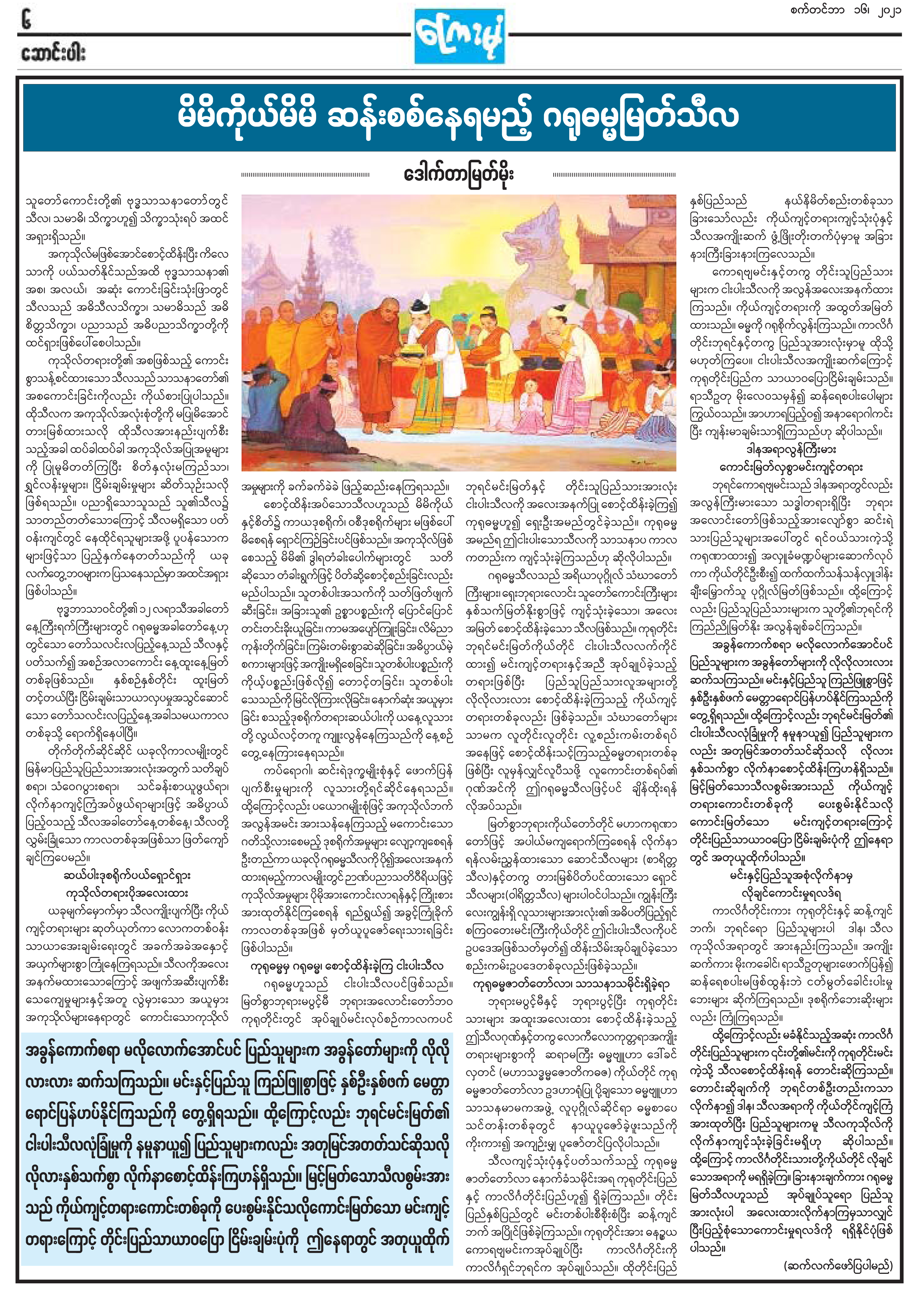 မိမိကိုယ်မိမိ ဆန်းစစ်နေရမည့် ဂရုဓမ္မမြတ်သီလ
