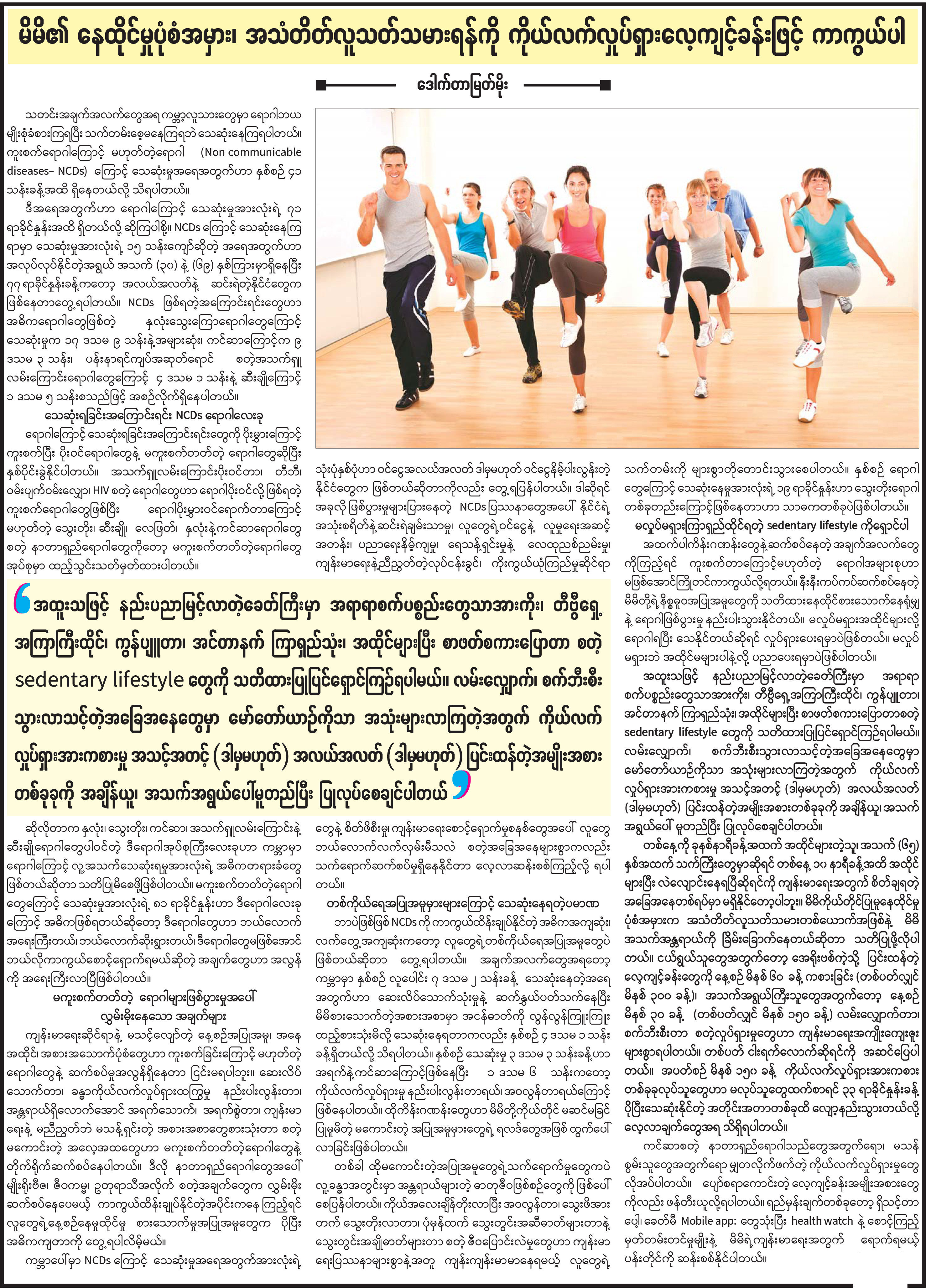 မိမိနေထိုင်မှုပုံစံအမှား၊ အသံတိတ်လူသတ်သမားရန်ကို ကိုယ်လက်လှုပ်ရှား လေ့ကျင့်ခန်းဖြင့် ကာကွယ်ပါ