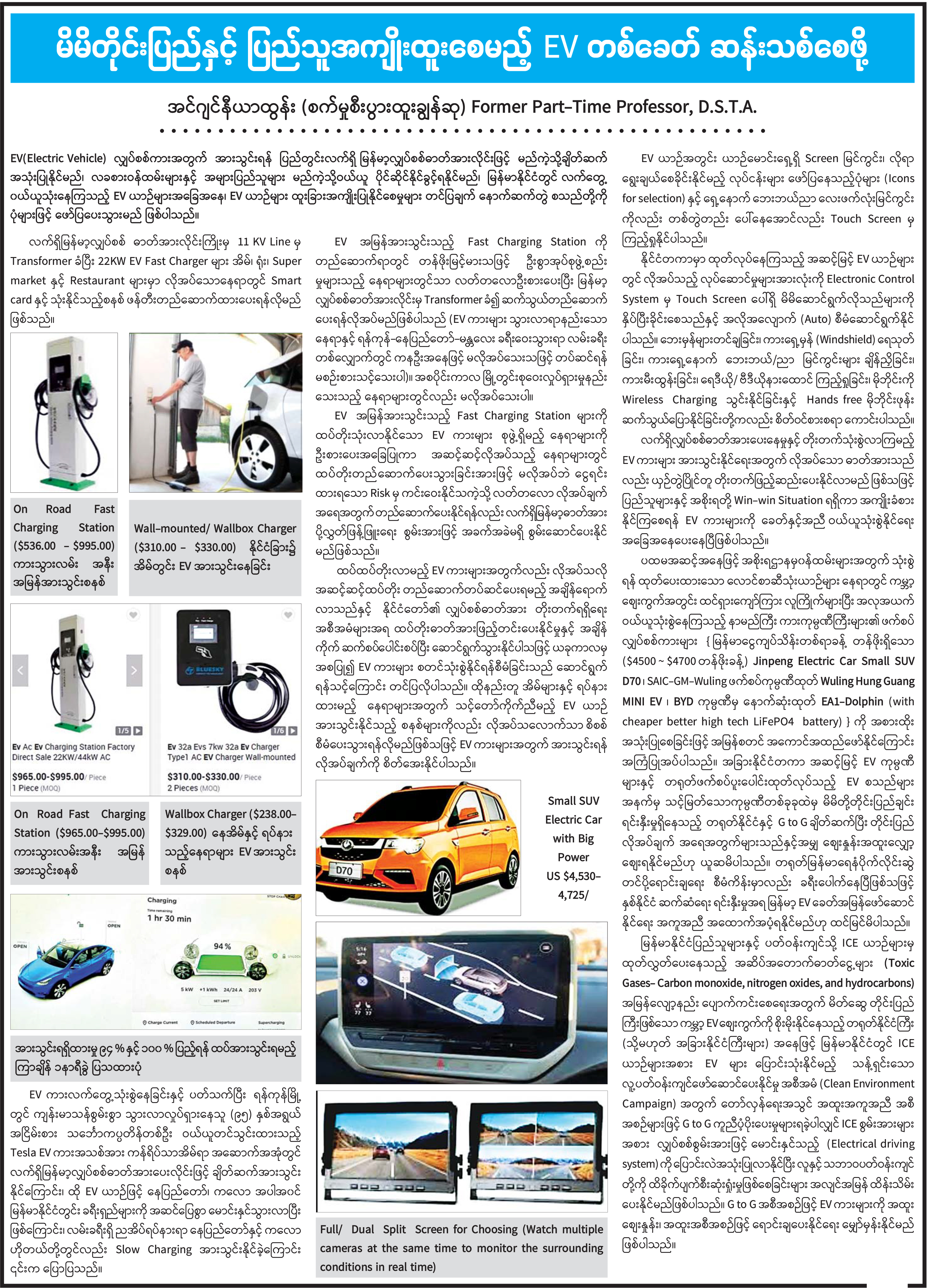 မိမိတိုင်းပြည်နှင့် ပြည်သူအကျိုးထူးစေမည့် EV တစ်ခေတ် ဆန်းသစ်စေဖို့