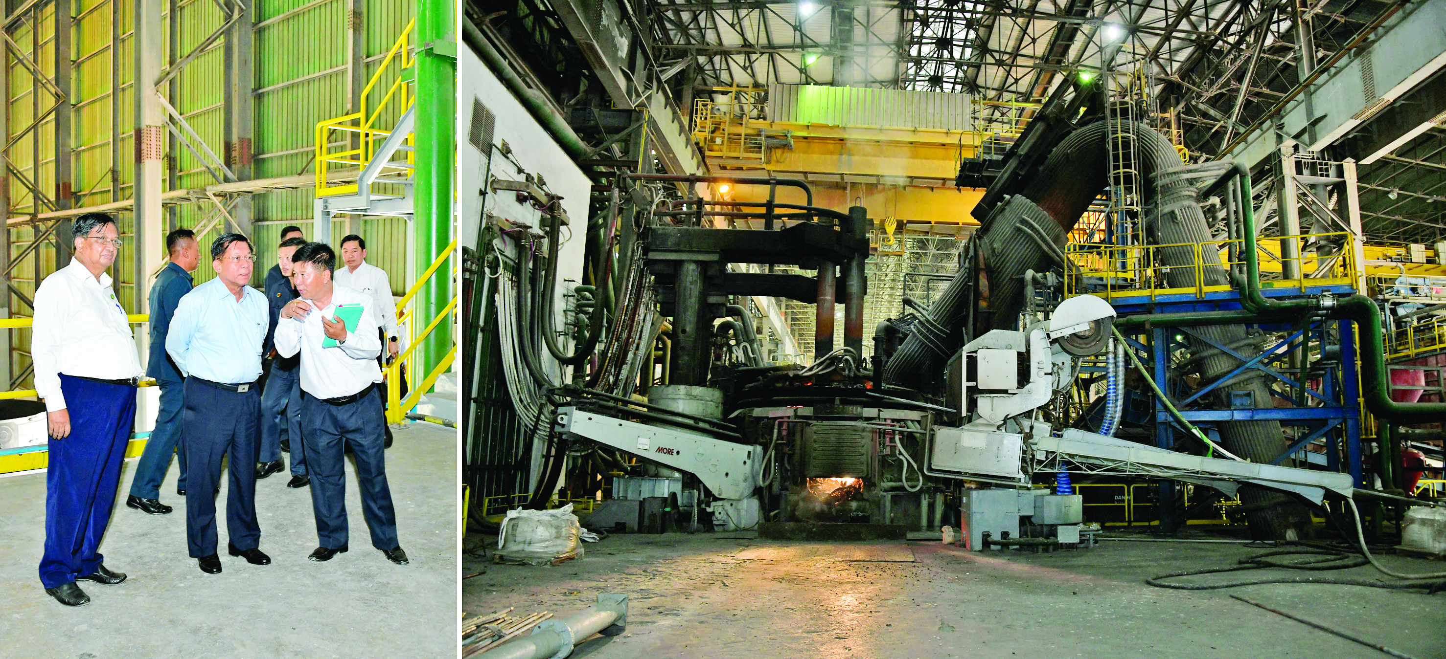 ဆက်လက်ပြီး နိုင်ငံတော်စီမံအုပ်ချုပ်ရေးကောင်စီဥက္ကဋ္ဌ နိုင်ငံတော်ဝန်ကြီးချုပ်နှင့် အဖွဲ့ဝင်များသည် Melt Shop-2 သို့ရောက်ရှိပြီး စက်ပစ္စည်းများ တပ်ဆင်နေမှု အခြေအနေများကိုလည်းကောင်း၊ ၂၀၁၆ ခုနှစ် ဩဂုတ် ၁၇ ရက်တွင် စတင်ထုတ်လုပ်ခဲ့သည့် သံမဏိပြားများကိုလည်းကောင်း လှည့်လည်ကြည့်ရှုစစ်ဆေးပြီး တာဝန်ရှိသူများအား လိုအပ်သည်များ လမ်းညွှန်မှာကြားသည်။