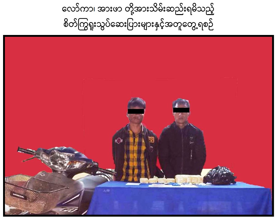ထို့အတူ ယင်းနေ့ ည ၁၀ နာရီတွင် တာချီလိတ်မြို့မရဲစခန်းမှ တပ်ဖွဲ့ဝင်များသည် တာချီလိတ်မြို့၊ ဝမ်ကောင်းရပ်ကွက်တွင် လော်ကာ မောင်းနှင်ပြီး အားဖာ လိုက်ပါလာသော မော်တော်ဆိုင်ကယ်အား ရပ်တန့်စစ်ဆေးရှာဖွေရာ စိတ်ကြွရူးသွပ်ဆေးပြား ၂၀,၀၀၀ ကိုလည်းကောင်း သိမ်းဆည်း ရမိခဲ့သဖြင့် ၎င်းတို့အား မူးယစ်ဆေးဝါးနှင့် စိတ်ကိုပြောင်းလဲစေသော ဆေးဝါးများဆိုင်ရာ ဥပဒေအရ အရေးယူထားကြောင်း သိရသည်။