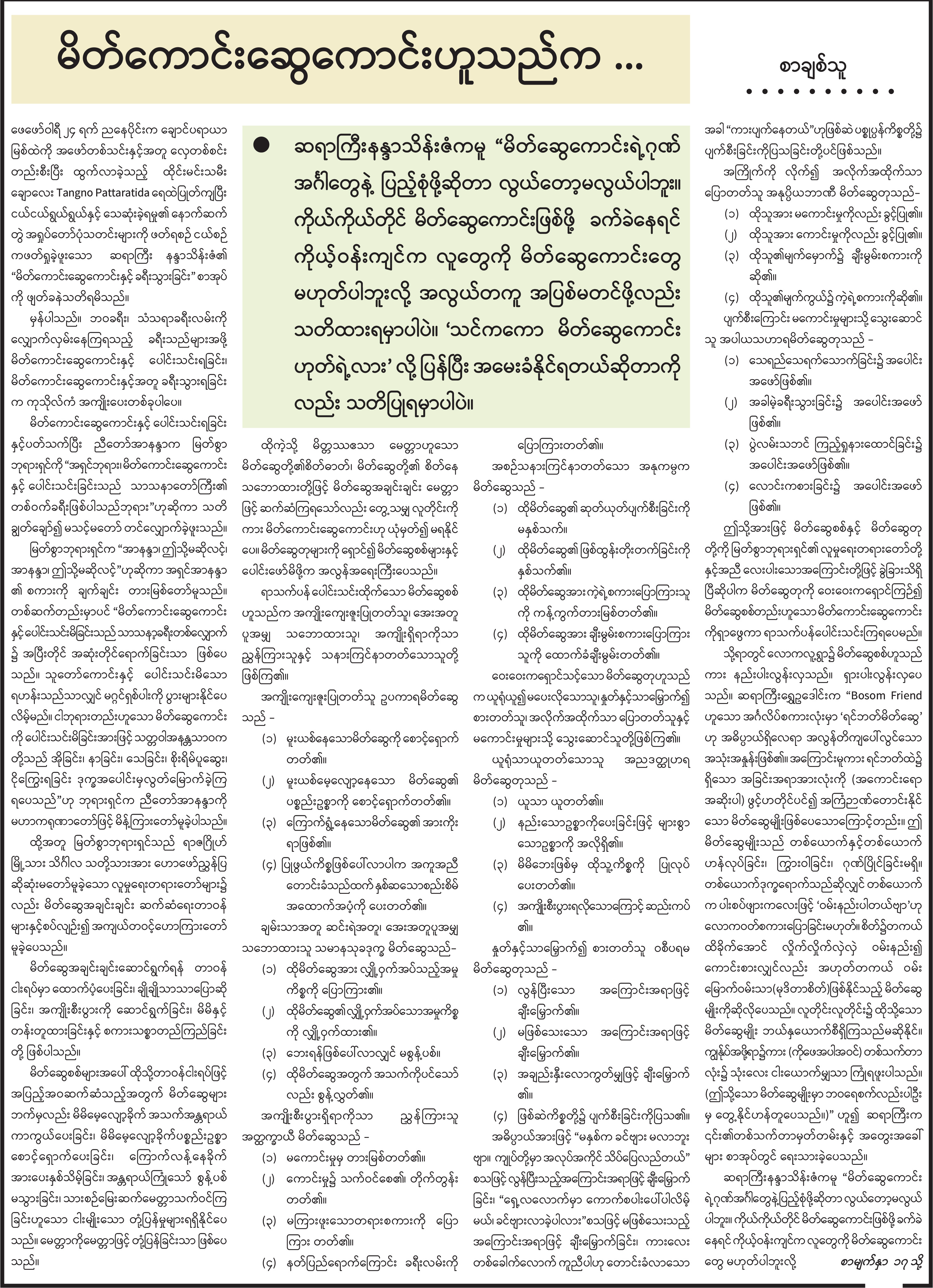 မိတ်ကောင်းဆွေကောင်းဟူသည်က...