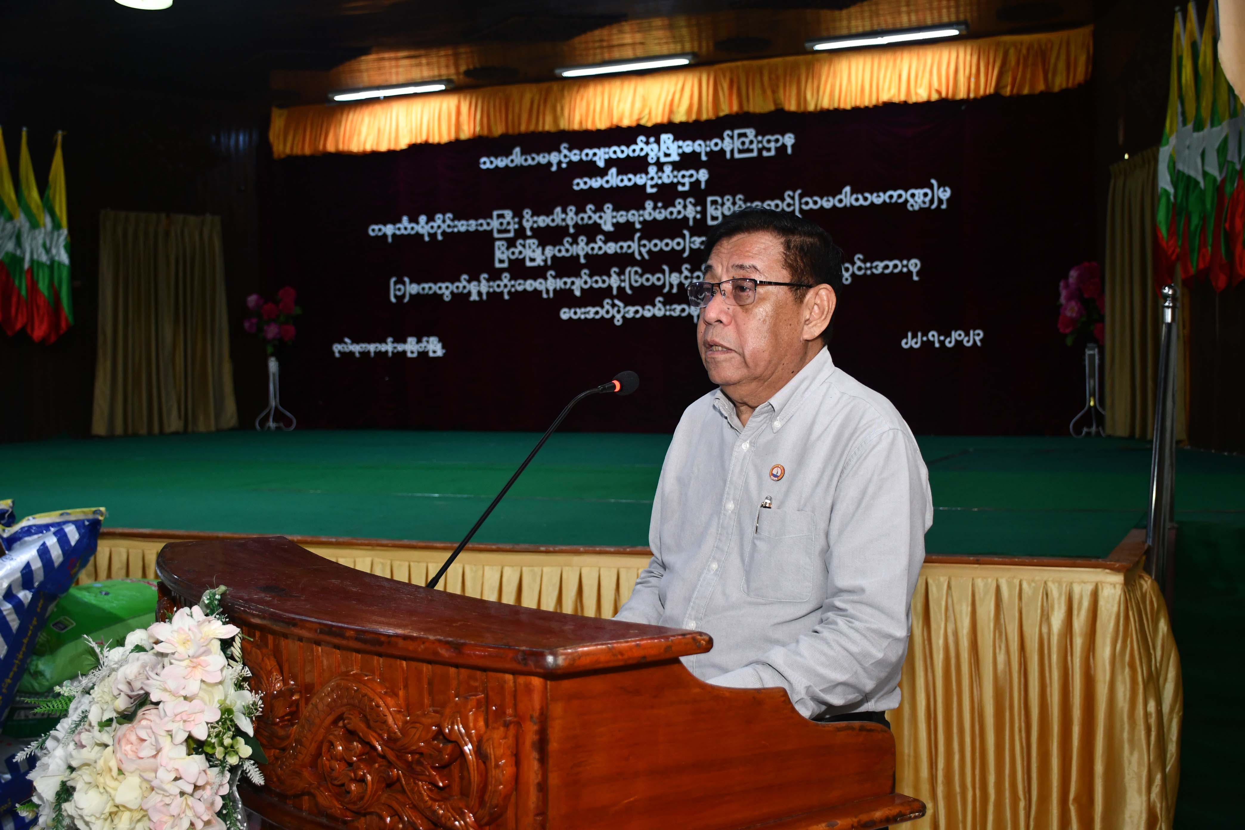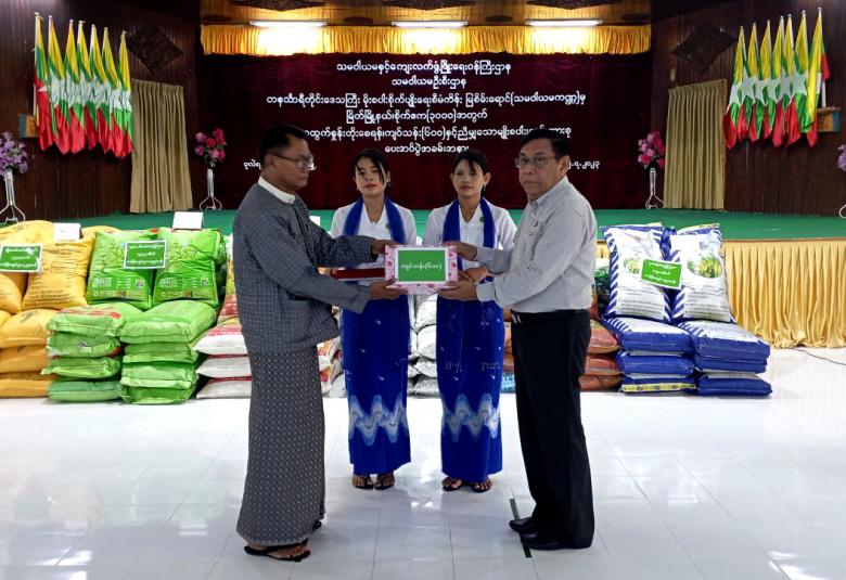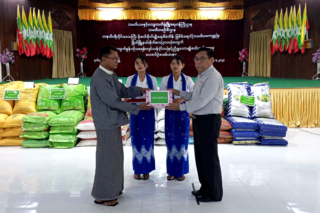 ထို့နောက် သမဝါယမဦးစီးဌာန တိုင်းဒေသကြီးဦးစီးမှူး ဦးကျော်စိုးမင်းက မျိုးစပါး၊ သွင်းအားစုများ မတည်ရင်းနှီးချေးငွေ ပေးအပ်ခြင်းနှင့် ပတ်သက်၍ ဆောင်ရွက်ထားရှိမှု အခြေအနေအား ရှင်းလင်းတင်ပြပြီး ဝန်ကြီးချုပ်နှင့် တာဝန်ရှိသူများက နိုင်ငံစီးပွားမြှင့်တင်ရေးရန်ပုံငွေ (သမဝါယမကဏ္ဍ)ဖြင့် မြိတ်မြို့နယ်အတွင်း ကျေးရွာများရှိ သမဝါယမအသင်း၊ အစုအဖွဲ့များမှ အသင်းသား တောင်သူ(၃၁၀)ဦးအား မိုးစပါးစိုက်ဧက(၃၀၀၀)အတွက် လိုအပ်လျက်ရှိသည့် တန်ဖိုးငွေကျပ် သန်း(၆ဝဝ)နှင့် ညီမျှသော မျိုးစပါး(၂၃၃၇)တင်း၊ ပုလဲဓါတ်မြေဩဇာ (၁၉၀)အိတ်၊ ကွန်ပေါင်းဓါတ်မြေဩဇာ (၅၃၃၄)အိတ်၊ သဘာဝမြေဩဇာ (၇၁၂)အိတ်ကို မတည်ထုတ်ချေး ထောက်ပံ့ပေးအပ်ခဲ့သည်။