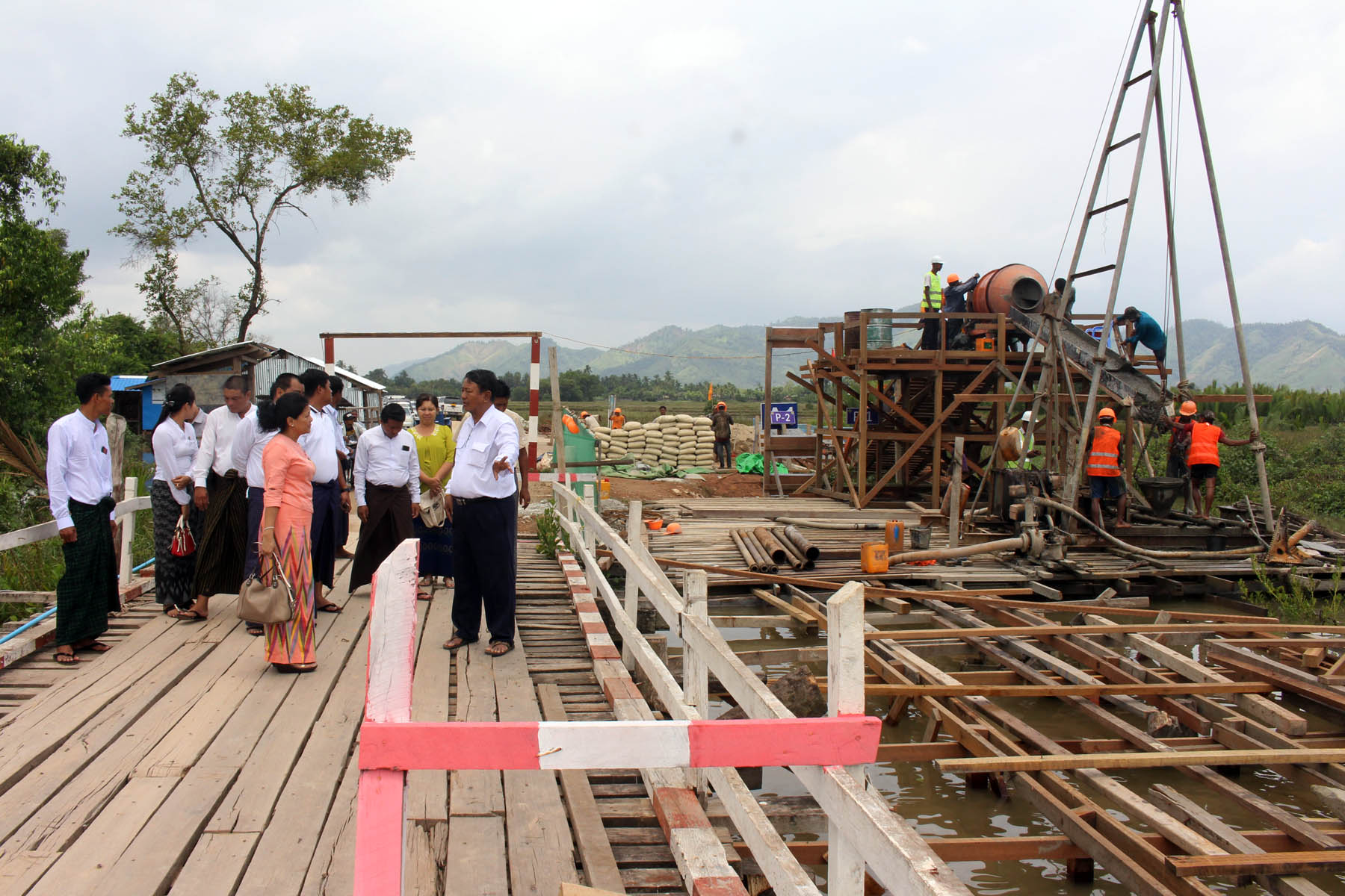 ဆက်လက်၍ ဝန်ကြီးနှင့်ဌာနဆိုင်ရာတာဝန်ရှိသူများသည် ကြေးနန်းတိုင် - တောင်ရှည် - ကသာရိုင် -နန်းတော်ရာ ကျေးရွာချင်းဆက်လမ်းမပေါ်ရှိ တိုင်းဒေသကြီး ဘဏ္ဍာရေး ရန်ပုံငွေဖြင့် တည်ဆောက်လျက်ရှိ သည့် တောင်ရှည်တံတား တည်ဆောက်နေမှုအား ကြည့်ရှုစစ်ဆေးခဲ့ကြသည်။