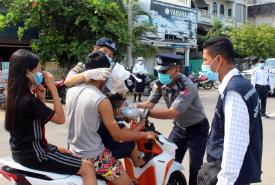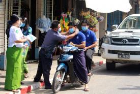 “Covid-19 နဲ့ပတ်သက်ပြီး ထိန်းချုပ်ရေးအတွက်ကို ထပ်ပြီး အဆင့်မြှင့်တင် ဆောင်ရွက်တာဖြစ်ပါတယ်။ ကျန်းမာရေးနှင့် အားကစားဝန်ကြီးဌာနမှ ထုတ်ပြန်ထားတာရှိပါတယ်။ အပြင်ထွက်လို့ရှိရင် ကိုယ်စီကိုယ်စီနှာခေါင်းစည်းတပ်ဖို့ ထုတ်ပြန်ထားတာရှိပါတယ်။ ဒီအပေါ်မှာ ပြည်သူလူထုတစ်ချို့က လိုက်နာမှုရှိသလို တစ်ချို့က လိုက်နာမှုအားနည်းတာတွေ ရှိတဲ့အတွက်ကြောင့် ပြည်သူလူထုအနေနဲ့ အပြင်ထွက်တဲ့အခါမှာ အားလုံး နှာခေါင်းစည်းတပ်ဖို့အတွက်ကို အဓိကထားပြီး ဒီလုပ်ငန်းစဉ်ကို ဆောင်ရွက်ခြင်းဖြစ်ပါတယ်”ဟု မြို့နယ်အုပ်ချုပ်ရေးမှူး ဦးဝင်းသူအောင်က ပြောသည်။
