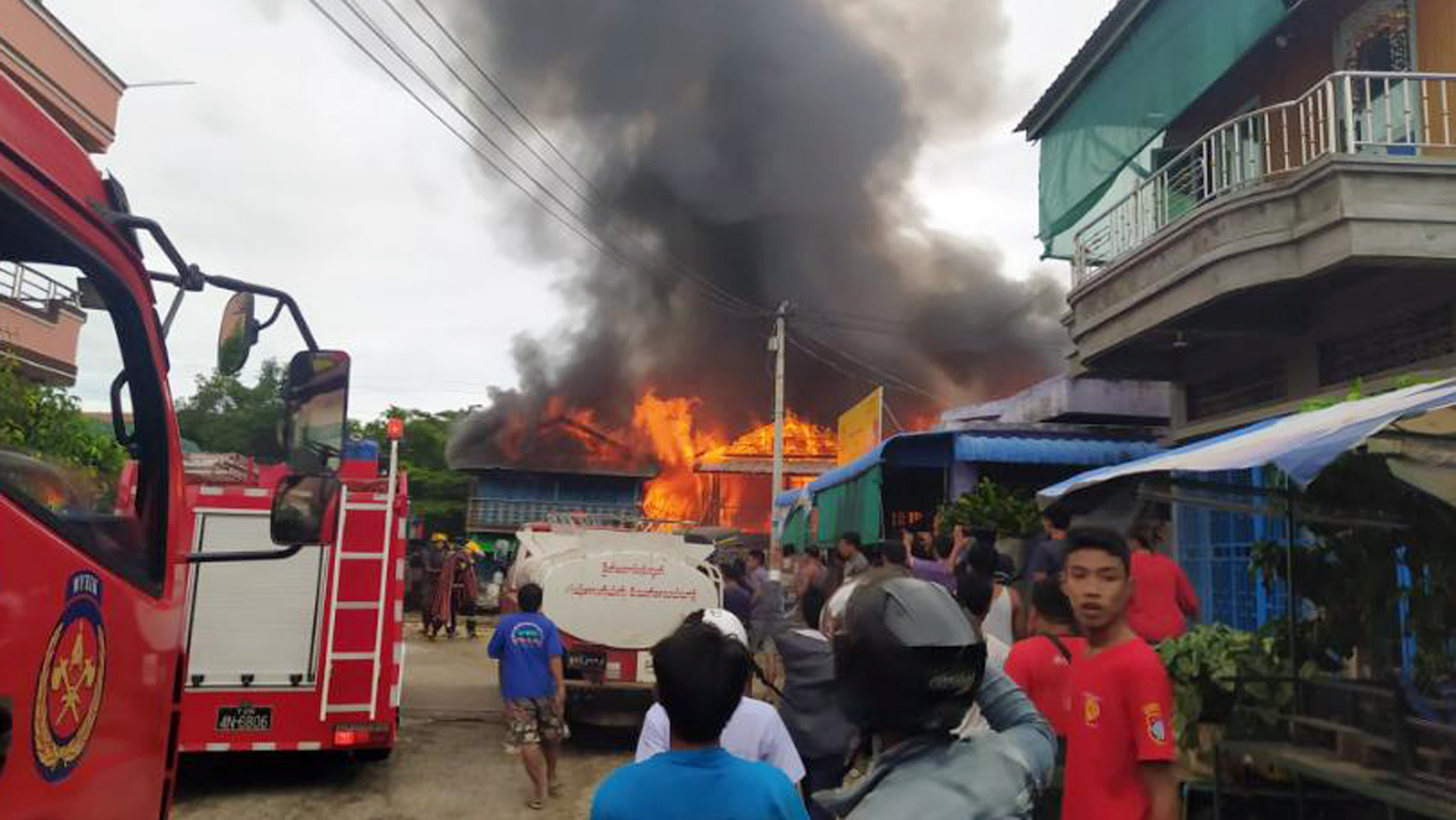 တနင်္သာရီတိုင်းဒေသကြီး မြိတ်မြို့ မြိတ်တောင်နယ်မြေ ထားဝယ်ကမ်း(၂)ရပ်ကွက် စိတ္တလမ်းတွင် ဇွန် ၃၀ ရက် မွန်းလွဲ ၁ နာရီ မိနစ် ၅၀ ခန့်က ဦးသန်းဇော်၏ အလျား(၃၀)ပေ၊ အနံ (၅၀)ပေခန့်ရှိ သွပ်မိုး၊ ပျဉ်ကာ၊ ပျဉ်ခင်း၊ (၁)ထပ်နေအိမ်တွင် ၎င်း၏ညီမဖြစ်သူ ဒေါ်စန်းစန်းလွင် (ခ) ပုငယ် (စိတ်ဝေဒနာသည်)မှ ဘုရားစင်အနီးရှိ နတ်စင်၌ ဖယောင်းတိုင်မီးပူဇော်ထားရာမှ မီးစတင်လောင်ကျွမ်းခဲ့ပြီး နေအိမ်(၃)လုံး မီးလောင်ကျွမ်းခဲ့၍ ထိခိုက်ဒဏ်ရာရ သေဆုံးမှုမရှိကြောင်း မီးသတ်ဦးစီးဌာနမှ သိရသည်။