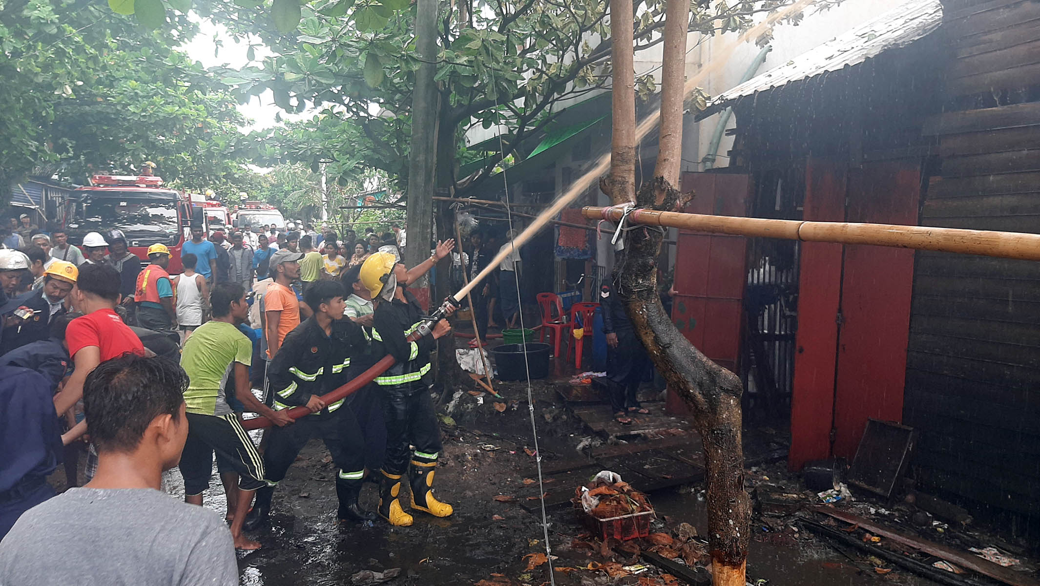 မီးလောင်မှုအား ပြည်သူတစ်ဦးမှ မီးသတ်ဦးစီးဌာနသို့ ဖုန်းသတင်းပေးသဖြင့် ဗဟိုမီးသတ်စခန်းမှ မီးငြှိမ်းသတ်ယာဉ် (၄)စီး၊ ရေသယ်ယာဉ် (၄)စီး၊ ရှာဖွေကယ်ဆယ်ရေးယာဉ် (၁)စီး၊ လူနာတင်ယာဉ် (၁)စီး၊ အုပ်ချုပ်မှုယာဉ် (၁)စီး၊ အရန်မီးသတ်စခန်းများမှ မီးငြှိမ်းသတ်ယာဉ် (၈)စီး၊ ရေသယ်ယာဉ် (၆)စီး၊ လူနာတင်ယာဉ်(၂)စီး၊ တပ်မတော်(လေ)မှ ရေသယ်ယာဉ် (၁)စီး၊ လူမှုရေးအသင်းအဖွဲ့များမှ လူနာတင်ယာဉ် (၅)စီး စုစုပေါင်း (၃၃)စီးဖြင့် ခရိုင်မီးသတ် ဦးစီးဌာနမှူး ဦးဇော်ဝင်း ဦးဆောင်၍ သန္ဓေ+အရန် မီးသတ်တပ်ဖွဲ့ဝင်များ၊ ပြည်သူများ၊ တပ်မတော်သားများ၊ ရဲတပ်ဖွဲ့ဝင်များ၊ ကြက်ခြေနီတပ်ဖွဲ့ဝင်များ စုပေါင်း၍ မီးသတ်ခဲ့ကြရာ မွန်းလွဲ ၂ နာရီ ၁၈ မိနစ်တွင် မီးငြိမ်းခဲ့သည်။