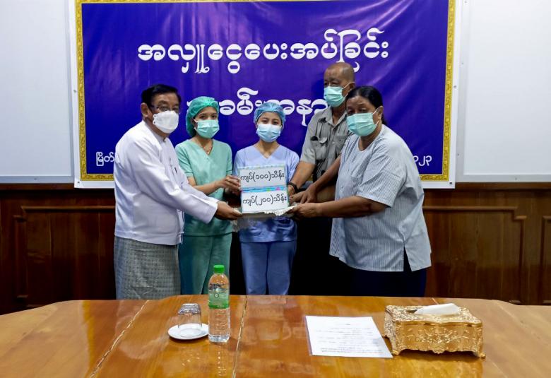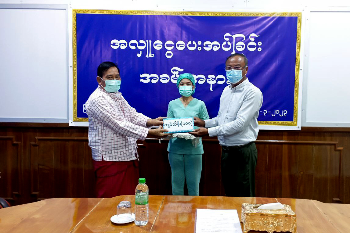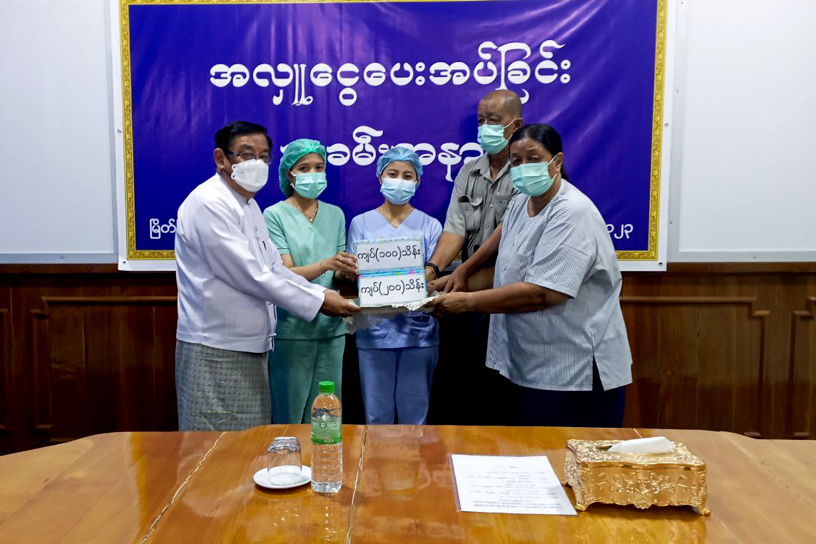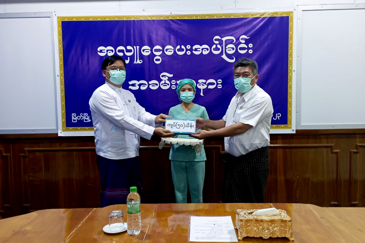 ထို့နောက် ကျောက်ကပ်သန့်စင်ခန်း အဆောက်အဦနှင့် ကျောက်ကပ်သန့်စင်ခန်းတွင် အသုံးပြုရန် လိုအပ်သောပစ္စည်းများ ဝယ်ယူနိုင်ရန်အတွက် မတည်အလှူငွေများ လှူဒါန်းရခြင်းနှင့်ပတ်သက်၍ အလှူရှင်များ ကိုယ်စား အလှူရှင်တစ်ဦးမှ ရှင်းလင်းတင်ပြပြီး စေတနာရှင်အလှူရှင် (၁၂)ဦးမှ ကျောက်ကပ်သန့်စင်ခန်းတွင် အသုံးပြုရန် လိုအပ်သော ပစ္စည်းများဝယ်ယူနိုင်ရန် ကျပ်သိန်း(၁၀၀)နှင့် ကျောက်ကပ်သန့်စင်ခန်း အဆောက်အဦ တည်ဆောက်ရန် ကျပ်သိန်း(၉၀၀)ကို လှူဒါန်းပေးအပ်ကြရာ တိုင်းဒေသကြီး ဝန်ကြီးချုပ်နှင့် ဝန်ကြီးများက လက်ခံရယူခဲ့ကြပြီး ဆေးရုံအုပ်ကြီး ဒေါက်တာ သန္တာမျိုးဝင်းက ကျေးဇူးတင်စကား ပြန်လည်ပြောကြားသည်။