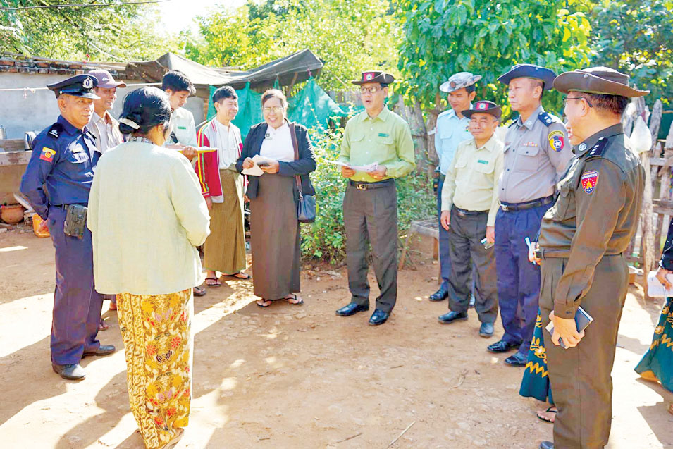 ပါတီစုံဒီမိုကရေစီအထွေထွေရွေးကောက်ပွဲ အောင်မြင်စွာကျင်းပနိုင်ရေးအတွက် မဲစာရင်းတွင် ပါသင့်သူများ မကျန်ရှိစေရေး အသက် ၁၈ နှစ်ပြည့်နှင့်အထက် စာရင်းအချက်အလက်များ ပြည့်စုံမှန်ကန်ရန်အတွက် မြို့နယ်အတွင်းရှိ ရပ်ကွက်/ကျေးရွာများတွင် အထွေထွေအုပ်ချုပ်ရေးဦးစီးဌာနမှ ဝန်ထမ်းများ၊ လူဝင်မှုကြီးကြပ်ရေးနှင့် ပြည်သူ့အင်အားဝန်ကြီးဌာန၊ မြို့နယ်ဦးစီးမှူးရုံးမှ ဝန်ထမ်းများ၊ ရပ်ကွက်/ ကျေးရွာအုပ်ချုပ်ရေးမှူးများနှင့် ရပ်/ကျေးကော်မရှင်အဖွဲ့ဝင်များက တစ်အိမ်တက်ဆင်း မဲစာရင်းတိုက်ဆိုင်စစ်ဆေးခြင်းလုပ်ငန်းကို ဆောင်ရွက်လျက်ရှိသည်။