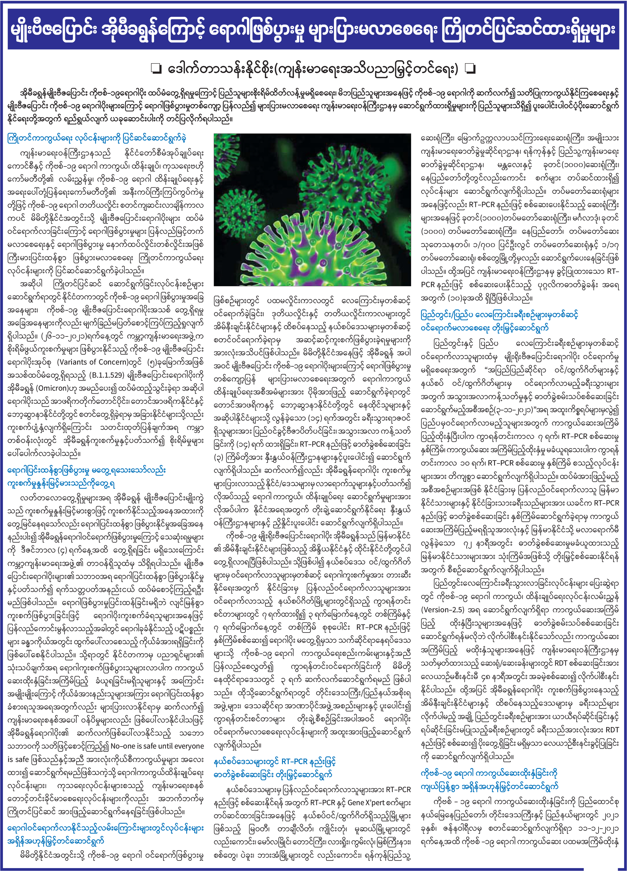 မျိုးဗီဇပြောင်း အိုမီခရွန်ကြောင့် ရောဂါဖြစ်ပွားမှု များပြားမလာစေရေး ကြိုတင်ပြင်ဆင်ထားရှိမှုများ