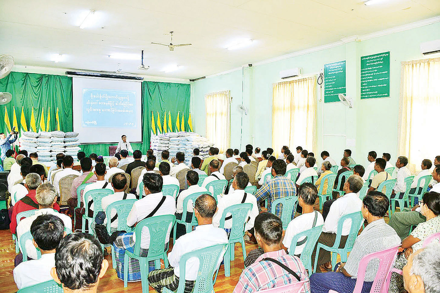 မိုးစပါးစိုက်ပျိုးတောင်သူများသို့ သီးနှံပေါ်ပေးစနစ်ဖြင့် ဓာတ်မြေဩဇာသွင်းအားစုပေးအပ်ခြင်း အခမ်းအနားကို ယနေ့နံနက်ပိုင်းတွင် ဒက္ခိဏသီရိမြို့နယ် အထွေထွေအုပ်ချုပ်ရေးဦးစီးဌာနရုံး၌ ကျင်းပသည်။