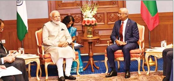 မော်လ်ဒိုက်နှင့် အိန္ဒိယနိုင်ငံတို့သည်    ကာကွယ်ရေးနှင့်  ပင်လယ်ရေကြောင်းအပါအဝင်   နယ်ပယ်အသီးသီးတွင်   ဆက်ဆံမှုခိုင်မာအားကောင်းစေရန်   ယမန်နေ့က   သဘောတူညီချက်  ခြောက်ခုကိုလက်မှတ်ရေးထိုးခဲ့ကြောင်း  ဒေသန္တရမီဒီယာများက  ယနေ့ဖော်ပြခဲ့သည်။