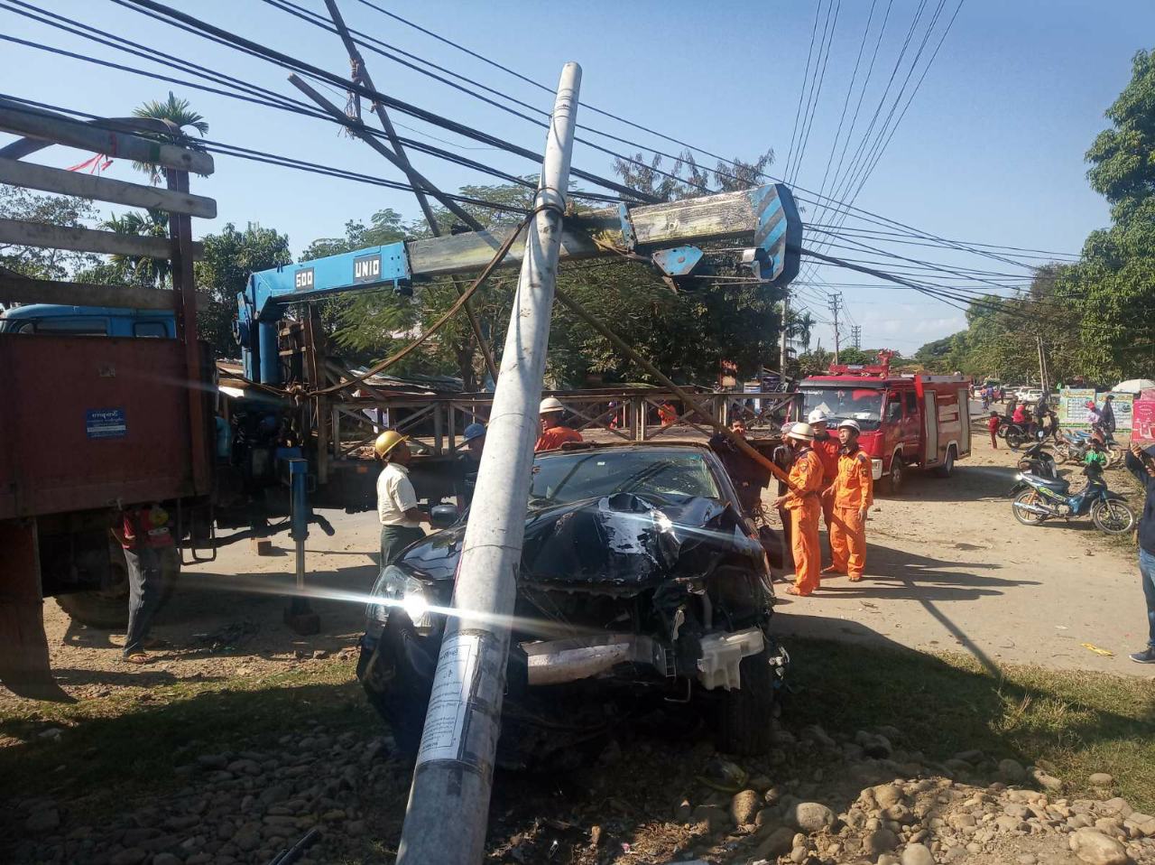 ကချင်ပြည်နယ်၊ မိုးကောင်းမြို့နယ်တွင် ယနေ့ နံနက် ၉ နာရီခွဲခန့်က မော်တော်ယာဉ်တစ်စီးမှ ဆိုင်ကယ်နှစ်စီးနှင့် ဓာတ်တိုင်အား ဝင်တိုက်မှုဖြစ်ပွားခဲ့ကြောင်း သိရသည်။
