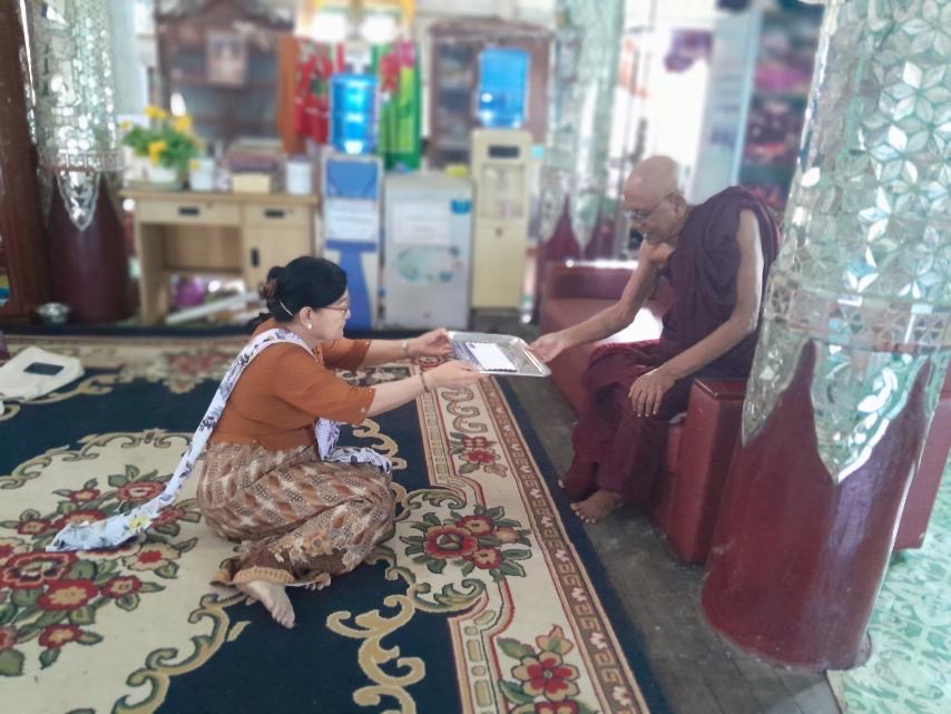 ဒုတိယဝန်ကြီးသည် စစ်တွေမြို့ပေါ်ရှိ မိုခါမုန်တိုင်းဒဏ်သင့် ဘုန်းတော်ကြီးကျောင်း (၃၂၆) ကျောင်းအနက် ကျောင်းတက်လမ်းရပ်ကွက်ရှိ ဘုန်းတော်ကြီးသင်ပညာရေးကျောင်းရှိသည့် ရွှေစေတီကျောင်းတိုက်၊ မကျည်းမြိုင်ရပ်ကွက်ရှိ နန္ဒာရာမပရိယတ္တိစာသင်တိုက်၊ ပြည်တော်သာရပ်ကွက်ရှိ တပ်ဦးဆုတောင်းပြည့် ပရိယတ္တိစာသင်တိုက်၊ ရွာကြီးတောင် ရပ်ကွက်ရှိ ပညာလင်္ကာရကျောင်းတိုက်နှင့် ကြွဖြူကျောင်းတိုက်၊ ဘောက်သီးစုရပ်ကွက်ရှိ မြို့မပရိယတ္တိစာသင်တိုက်နှင့် ကန်တော်ကြီးရပ်ကွက်ရှိ မဟာဇေယျသိဒ္ဓိအဓိဌာန် ကျောင်းတို့၏ကျောင်းဆောင်များ၊စာသင်တိုက်များ၊ ဘုန်းတော်ကြီး သင်ပညာရေးကျောင်း ဆောင်များ၊ သိမ်များ၊ စေတီများ ပျက်စီးမှုကို ကြည့်ရှုကာ ဘုန်းတော်ကြီးကျောင်းများအတွက် သွပ်နှင့်သစ်သားရရှိမှုနှင့် အမိုးများ မိုးပြီးမပြီး မေးမြန်းလျှောက်ထား၍ နဝကမ္မအလှူငွေ များဆက်ကပ်သည်။