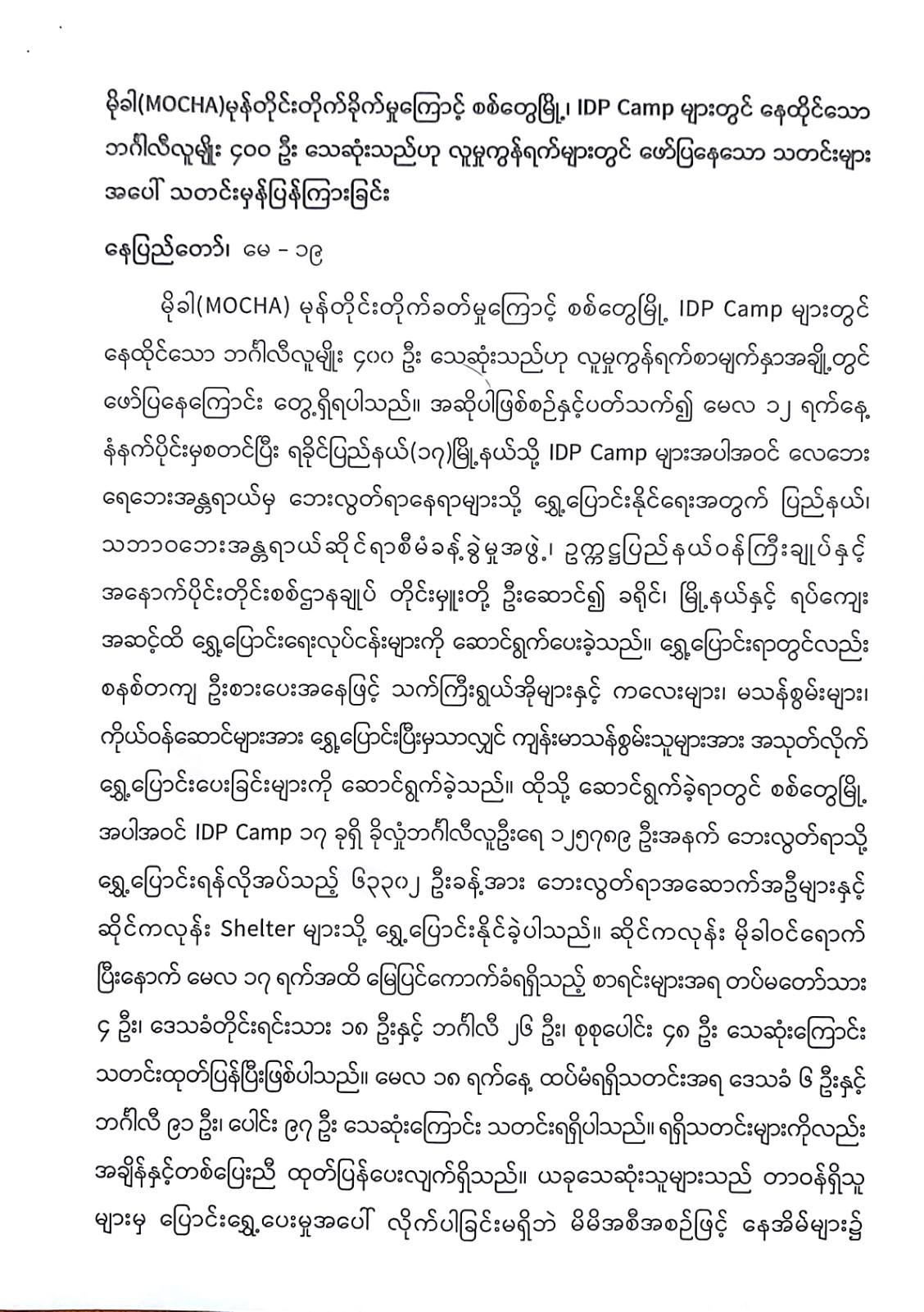 မိုခါမုန်တိုင်းတိုက်ခတ်မှုကြောင့် စစ်တွေမြို့၊ IDP Camp များတွင် နေထိုင်သော ဘင်္ဂလီလူမျိုး ၄၀၀ ဦးသေဆုံးသည်ဟု လူမှုကွန်ရက်များတွင် ဖော်ပြနေသော သတင်းများအပေါ် သတင်းမှန်ပြန်ကြားခြင်း