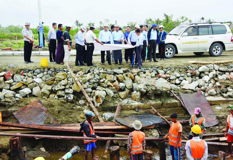 ယင်းနောက် ဗိုလ်ချုပ်ကြီး တင်အောင်စန်းနှင့်အဖွဲ့သည် မုန်တိုင်းဒဏ်ကြောင့် ပျက်စီးခဲ့သည့် ကစ္ဆပရပ်ကွက် ကမ်းနားလမ်း ပျက်စီးချို့ယွင်းမှု အခြေအနေများကို ကြည့်ရှုစစ်ဆေးပြီး ပြုပြင် မွမ်းမံထိန်းသိမ်းနိုင်ရေးအတွက် သက်ဆိုင်ရာ တာဝန်ရှိသူများက ကြပ်မတ်ဆောင်ရွက်သွားရန် မှာကြားသည်။