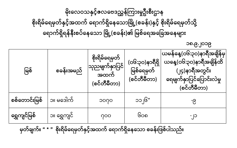 မိုးလေဝသနှင့် ဇလဗေဒညွှန်ကြားမှုဦးစီးဌာန(၁၈.၉.၂၀၁၉)ရက်နေ့၊ နံနက် (ဝ၆:၃၀) နာရီအချိန်တွင် တိုင်းတာရရှိသော မြစ်ရေအခြေအနေ များ