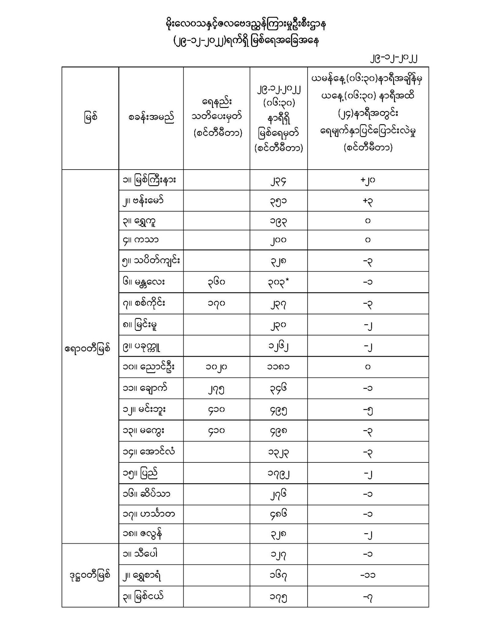 မိုးလေဝသနှင့် ဇလဗေဒညွှန်ကြားမှုဦးစီးဌာနက ဒီဇင်ဘာ ၂၉ ရက်နံနက်(၀၆:၃၀)နာရီတွင် တိုင်းတာရရှိသော မြစ်ရေအခြေအနေများ