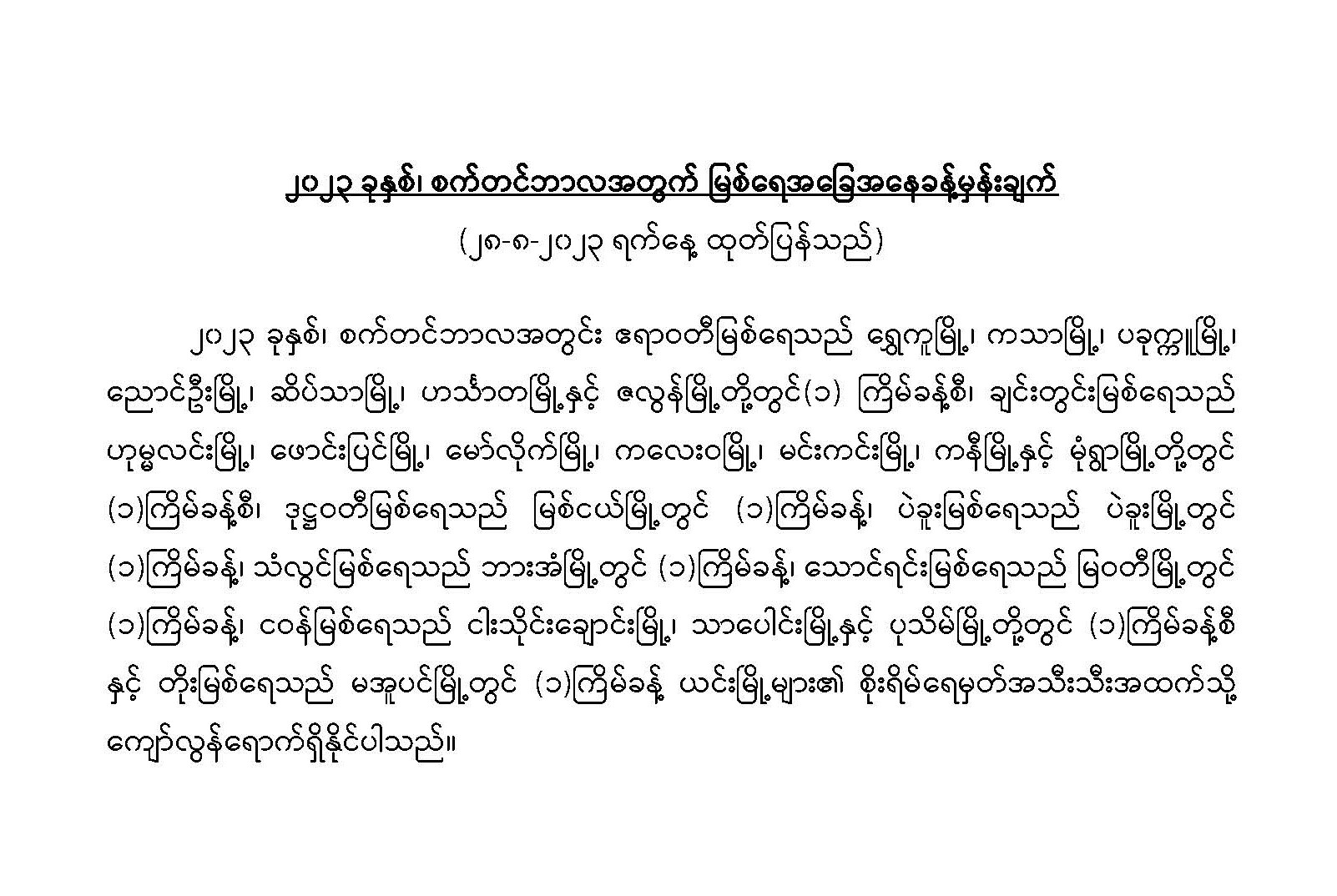 မိုးလေဝသနှင့် ဇလဗေဒညွှန်ကြားမှုဦးစီးဌာနမှ ၂၀၂၃ ခုနှစ်၊ စက်တင်ဘာလ လပတ်အတွက် မြစ်ရေအခြေအနေ ခန့်မှန်းချက်