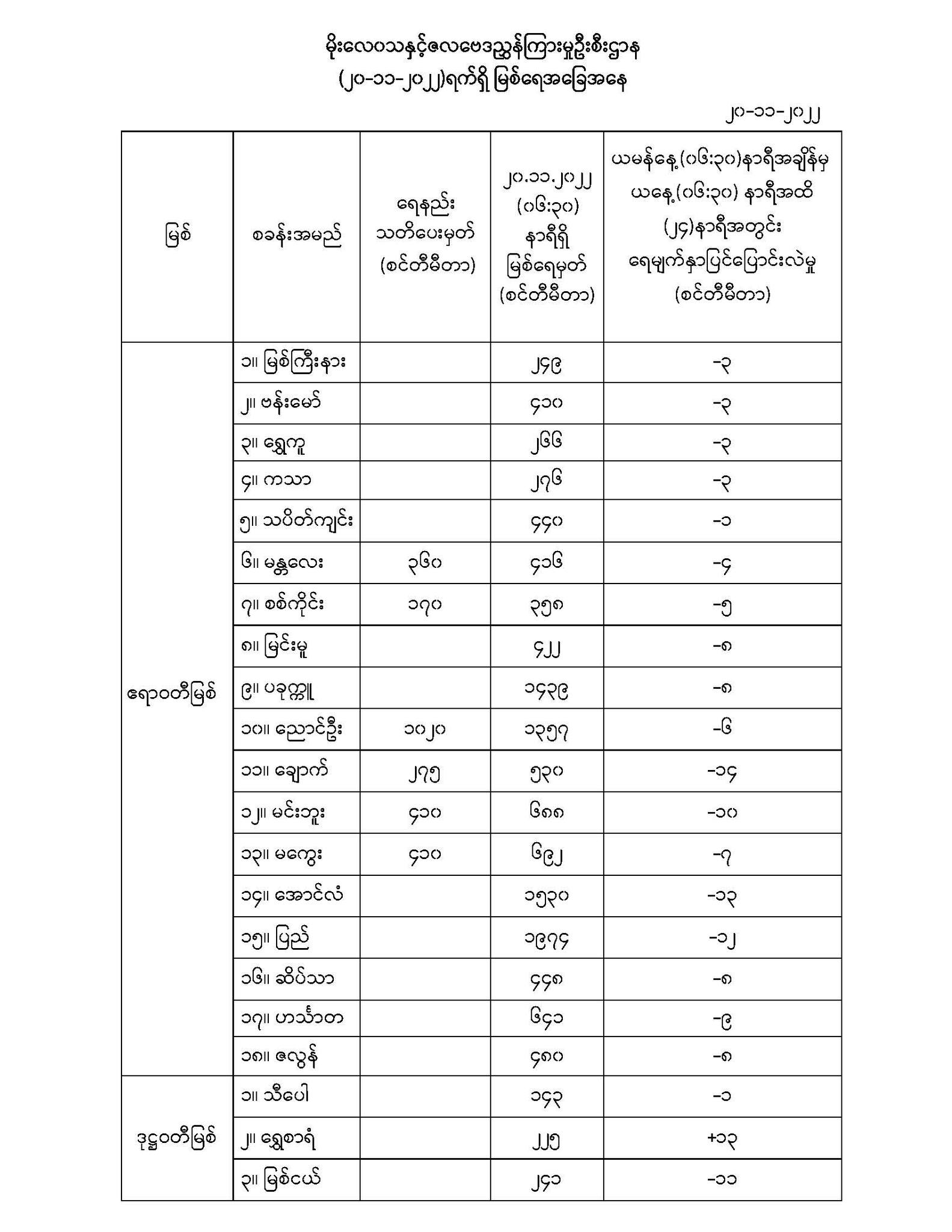 မိုးလေဝသနှင့် ဇလဗေဒညွှန်ကြားမှုဦးစီးဌာနမှ နိုဝင်ဘာ ၂၀ ရက် နံနက် (၀၆:၃၀) နာရီတွင် တိုင်းတာရရှိသော မြစ်ရေအခြေအနေများ