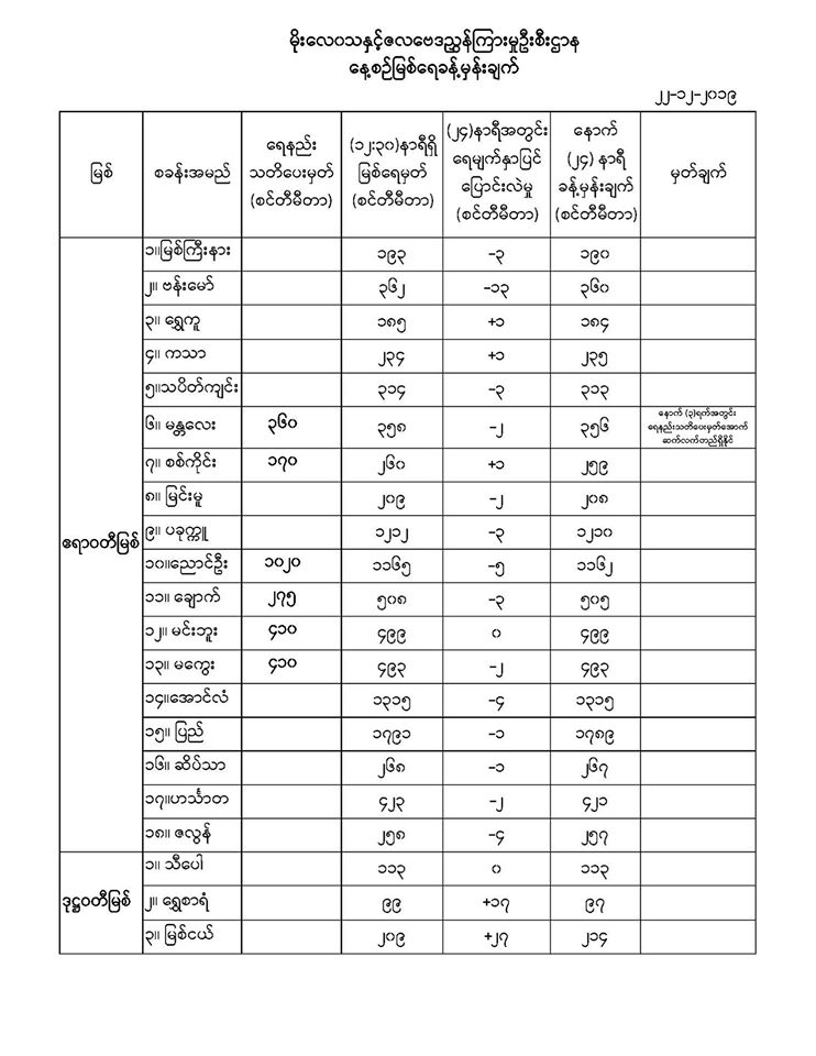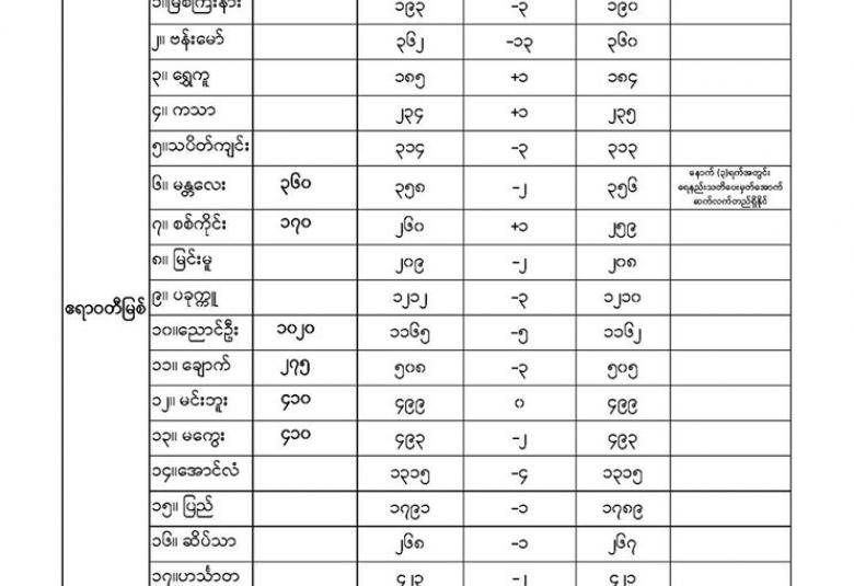 မိုးလေဝသနှင့် ဇလဗေဒညွှန်ကြားမှုဦးစီးဌာနမှ ယနေ့တွင် ထုတ်ပြန်သည့် နေ့စဉ်မြစ်ရေခန့်မှန်းချက်များ