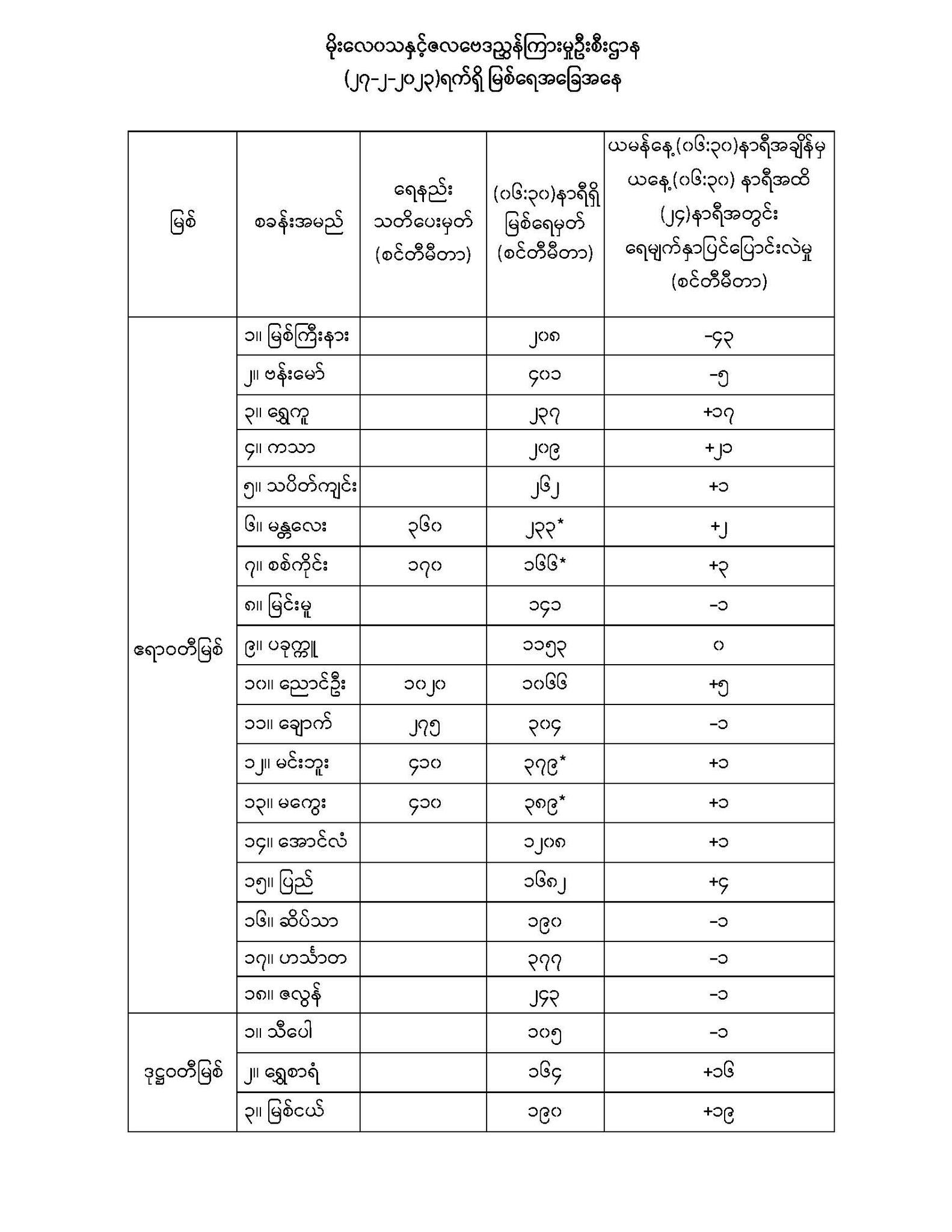 မိုးလေဝသနှင့်ဇလဗေဒညွှန်ကြားမှု ဦးစီးဌာနက ဖေဖော်ဝါရီ ၂၇ ရက် နံနက် ၆ နာရီခွဲ တွင် တိုင်းတာရရှိသော မြစ်ရေအခြေအနေများ