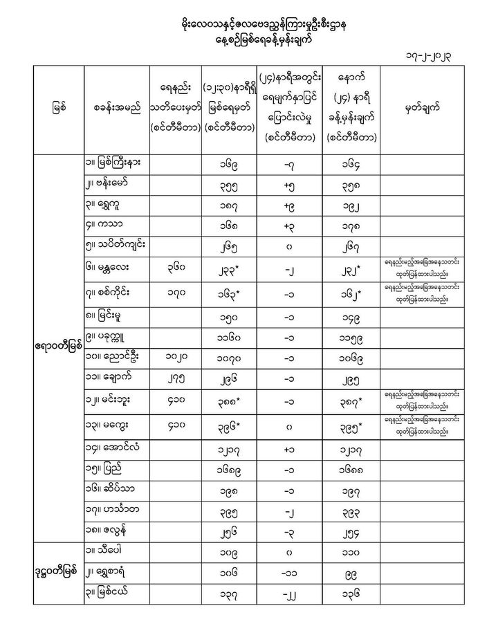 မိုးလေဝသနှင့်ဇလဗေဒညွှန်ကြားမှုဦးစီးဌာနမှ (၁၇.၂.၂၀၂၃) ရက်နေ့တွင် ထုတ်ပြန်သည့် နေ့စဉ်မြစ်ရေခန့်မှန်းချက်များ
