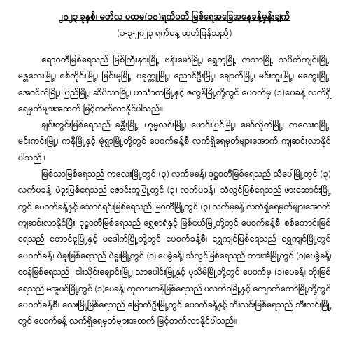 မိုးလေဝသနှင့်ဇလဗေဒညွှန်ကြားမှုဦးစီးဌာနမှ ၂၀၂၃ ခုနှစ်၊ (၁.၃.၂၀၂၃) ရက်နေ့ မတ်လ ပထမ(၁၀)ရက်ပတ်အတွက် မြစ်ရေအခြေအနေခန့်မှန်းချက်