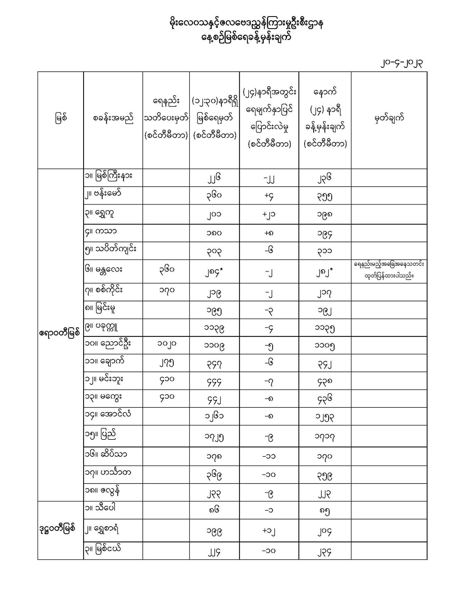 မိုးလေဝသနှင့်ဇလဗေဒညွှန်ကြားမှုဦးစီးဌာနမှ (၂၀.၄.၂၀၂၃) ရက်နေ့တွင် ထုတ်ပြန်သည့် နေ့စဉ်မြစ်ရေခန့်မှန်းချက်များ