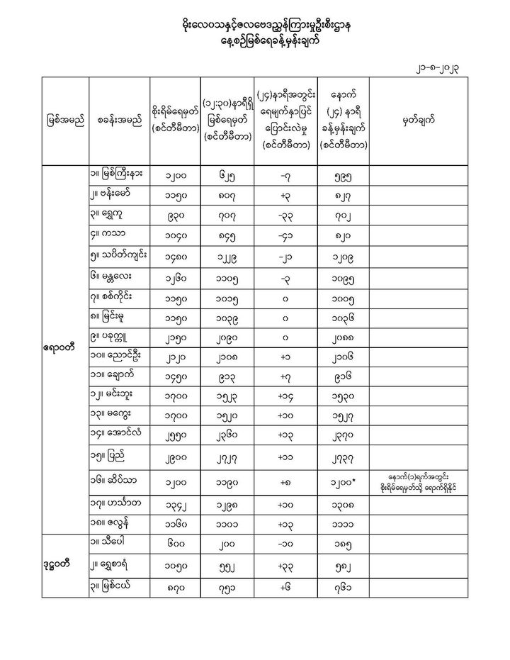 မိုးလေဝသနှင့်ဇလဗေဒညွှန်ကြားမှုဦးစီးဌာနမှ (၂၁.၈.၂၀၂၃) ရက်နေ့တွင် ထုတ်ပြန်သည့် နေ့စဉ်မြစ်ရေခန့်မှန်းချက်