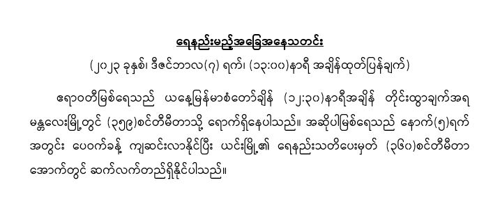 မိုးလေဝသနှင့်ဇလဗေဒညွှန်ကြားမှုဦးစီးဌာနမှ (၇.၁၂.၂၀၂၃) ရက်နေ့တွင် ရေနည်းမည့်အခြေအနေသတင်း